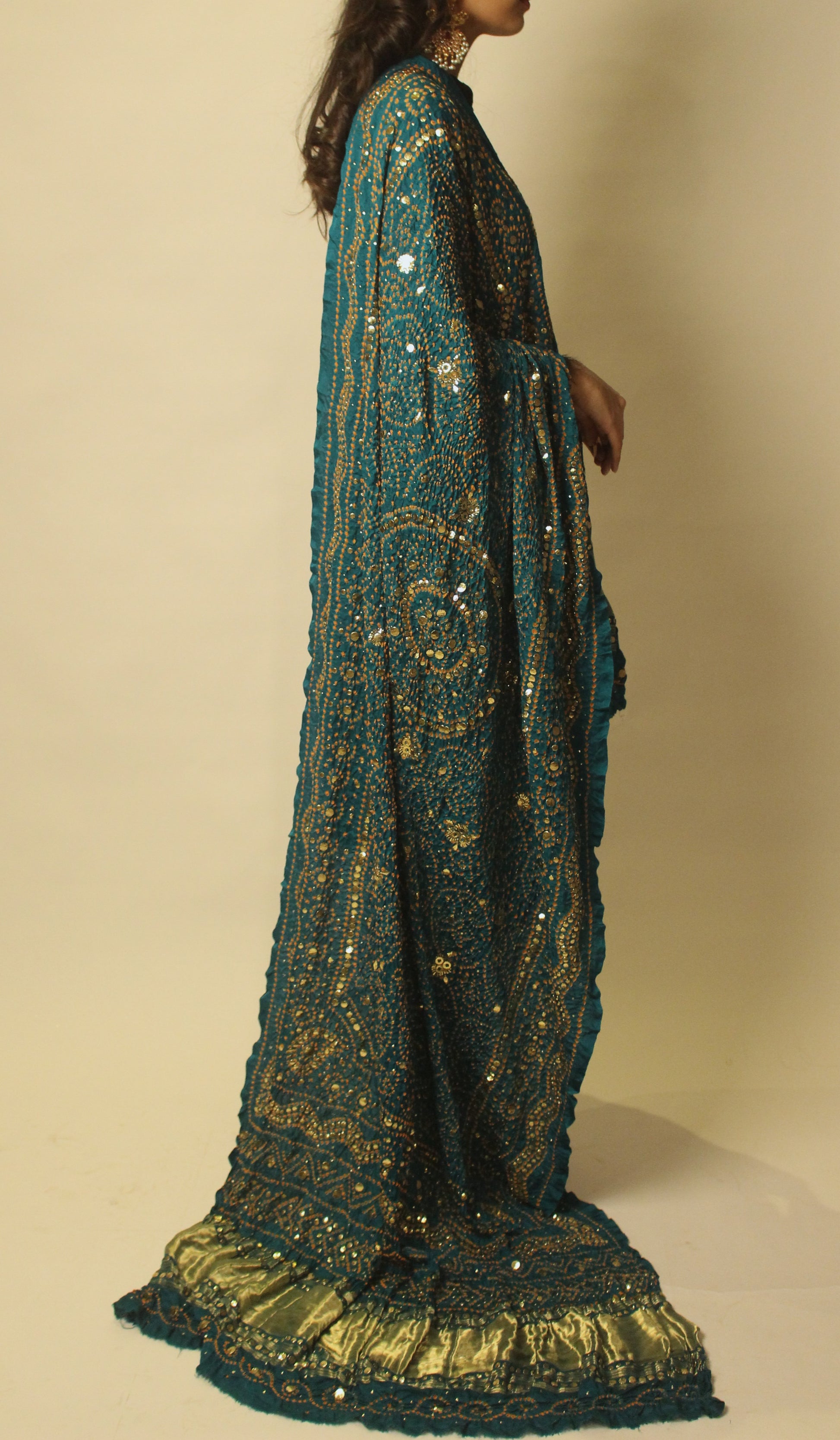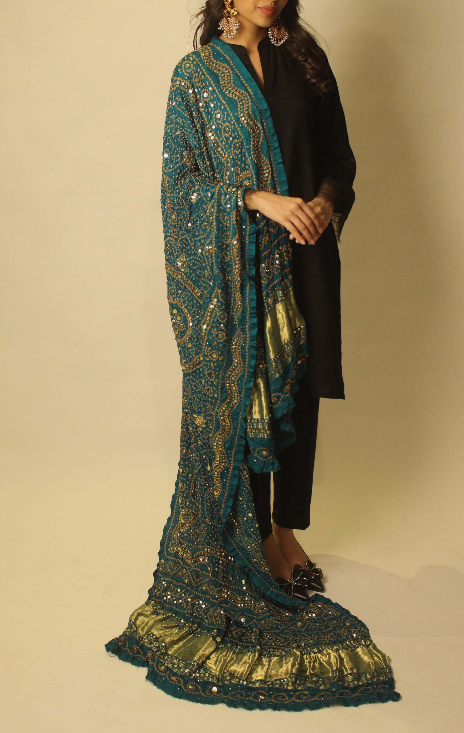 3 Yards Indian Gajji silk Dupatta in intricate chunri pattern with kamdani.