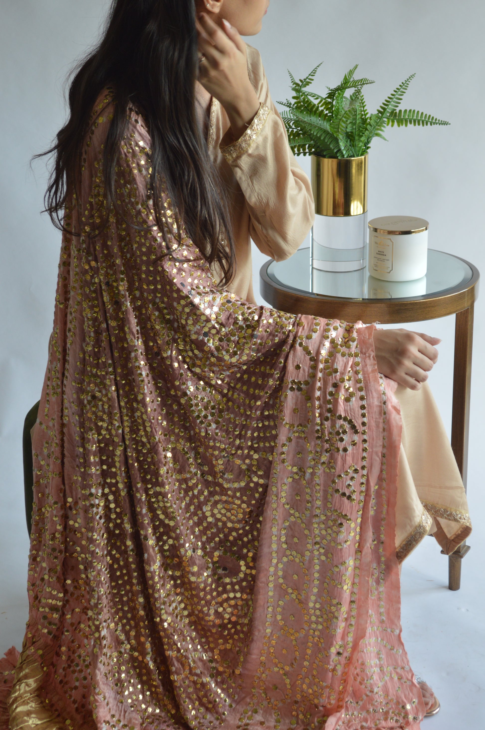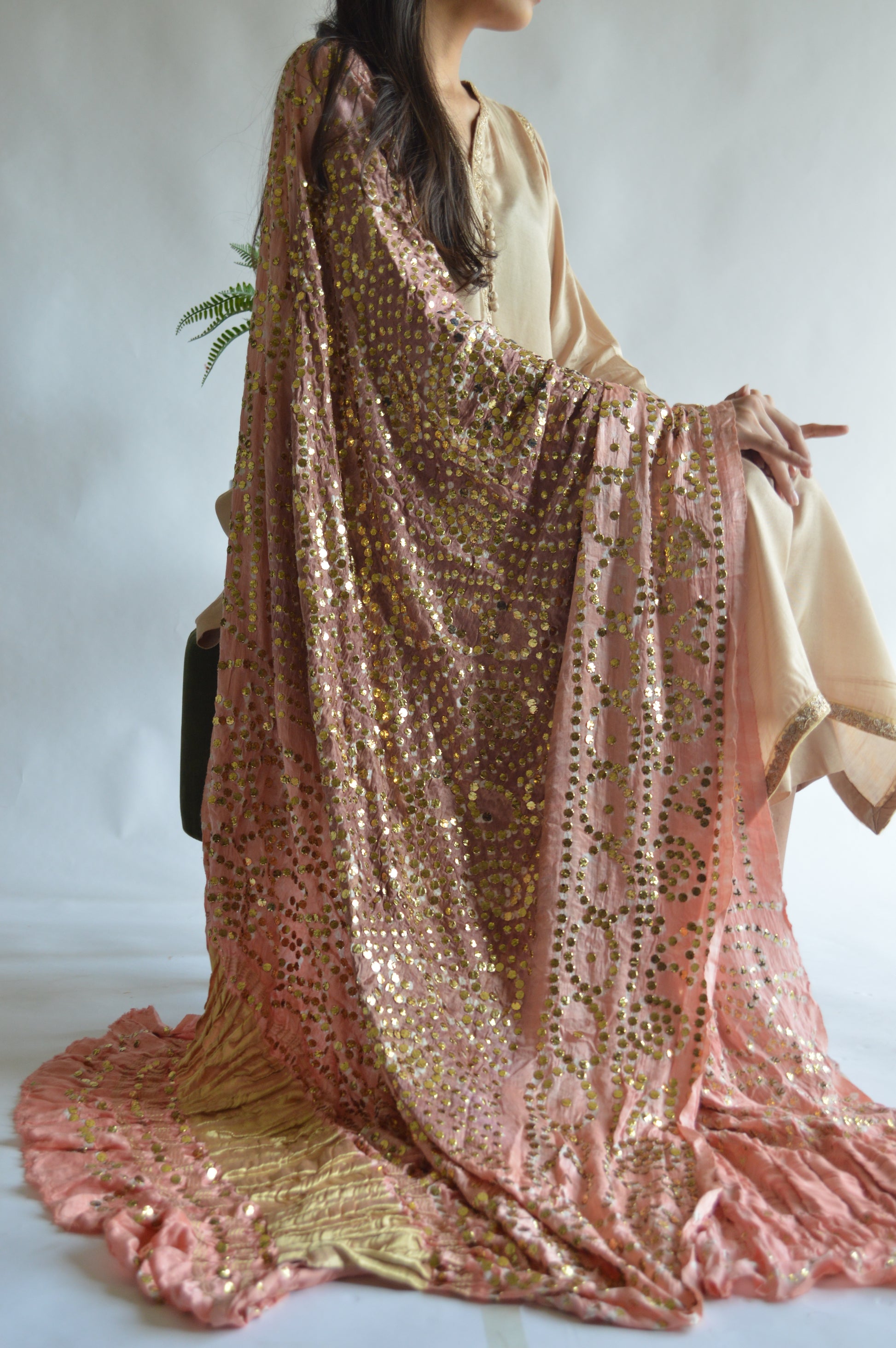 3 yards Local gajji silk duppatta with heavy kaamdani.