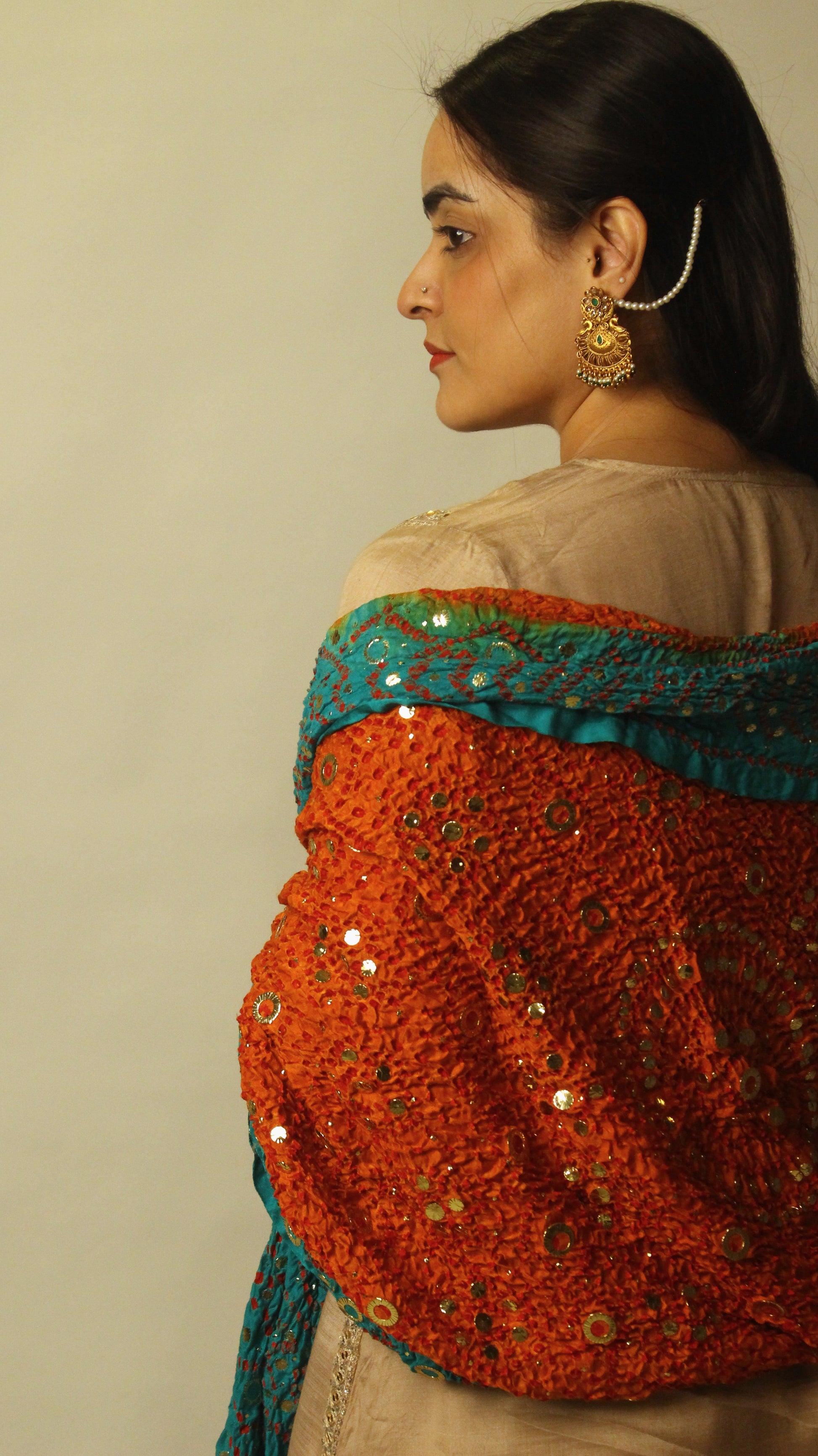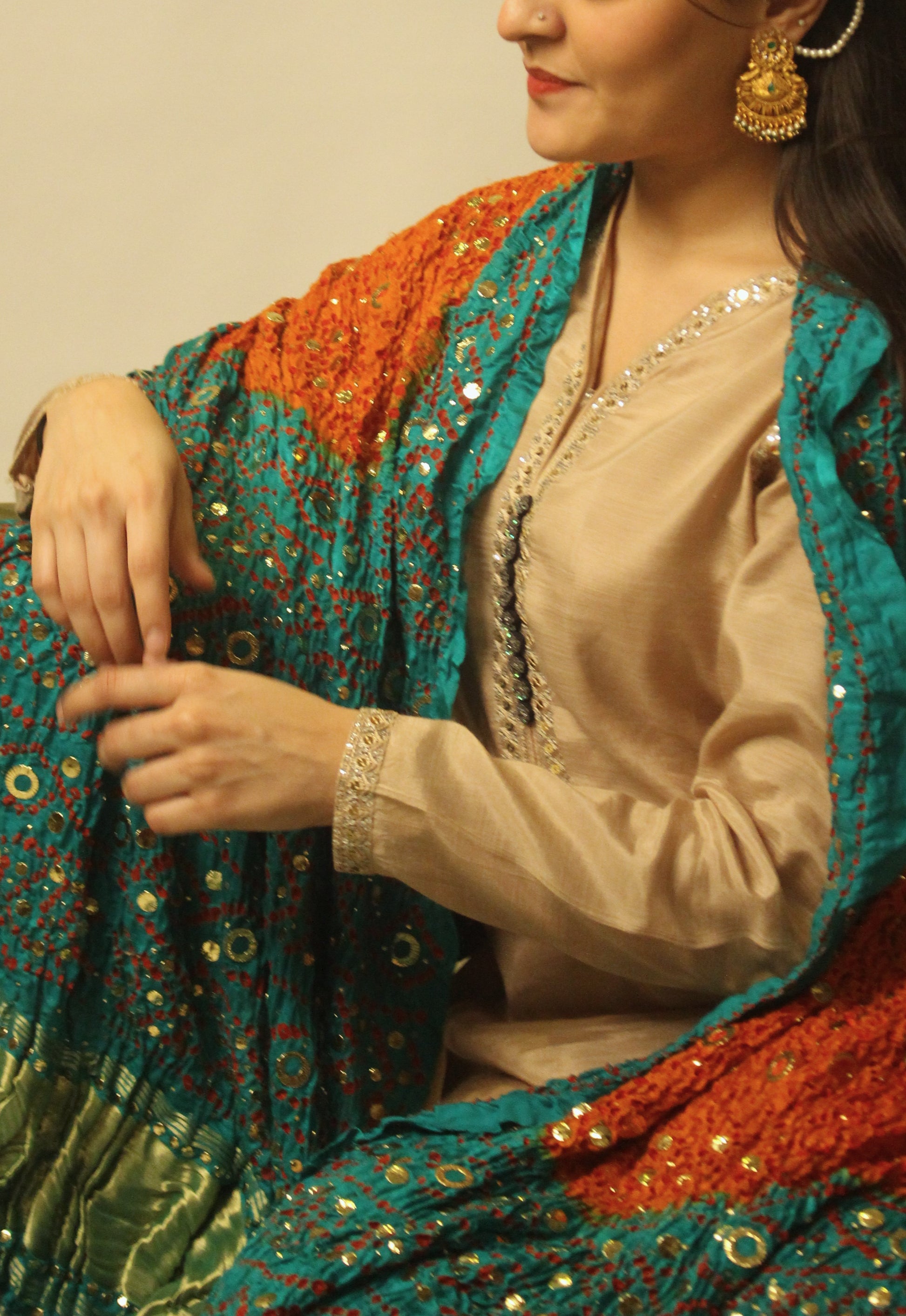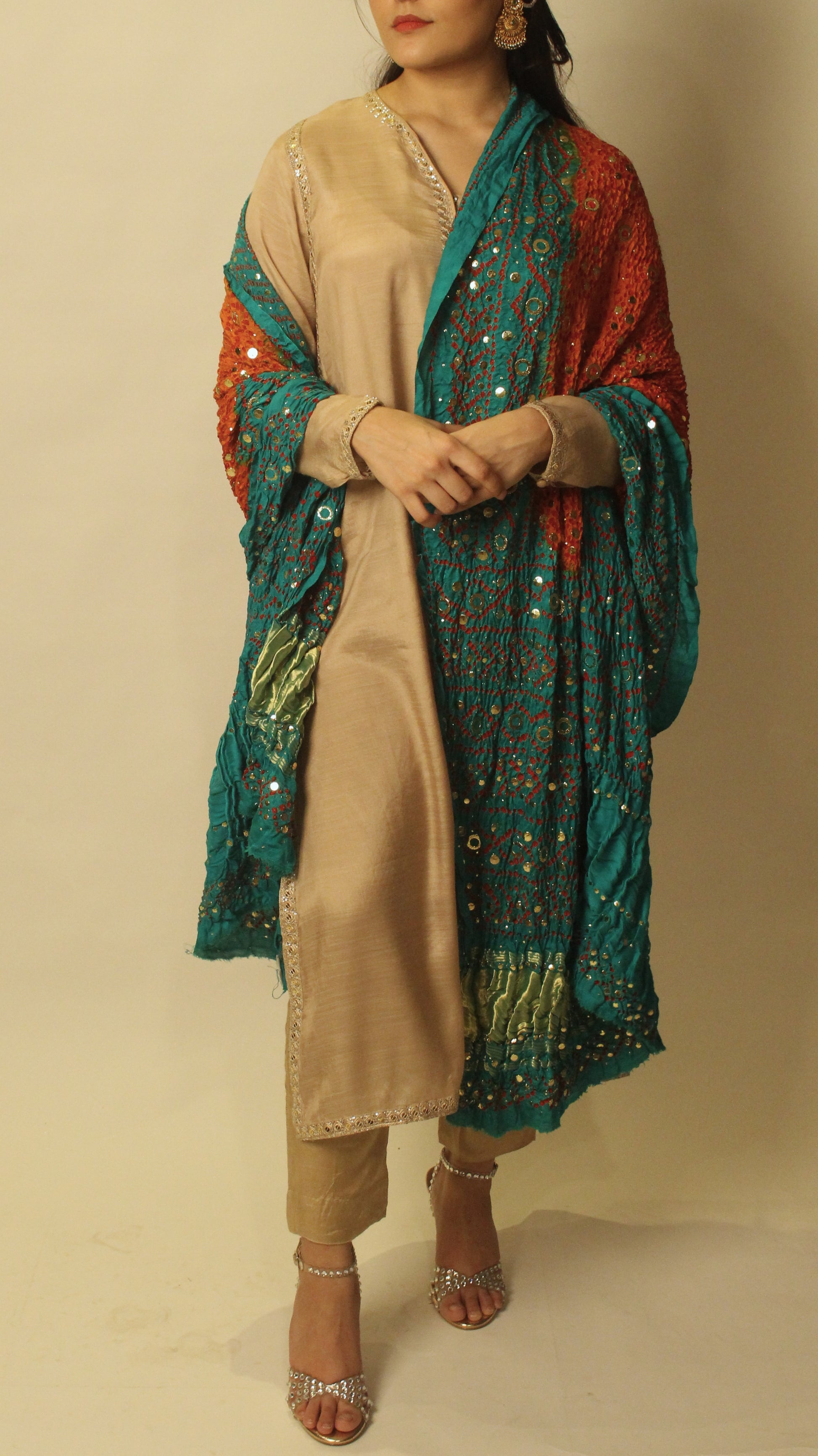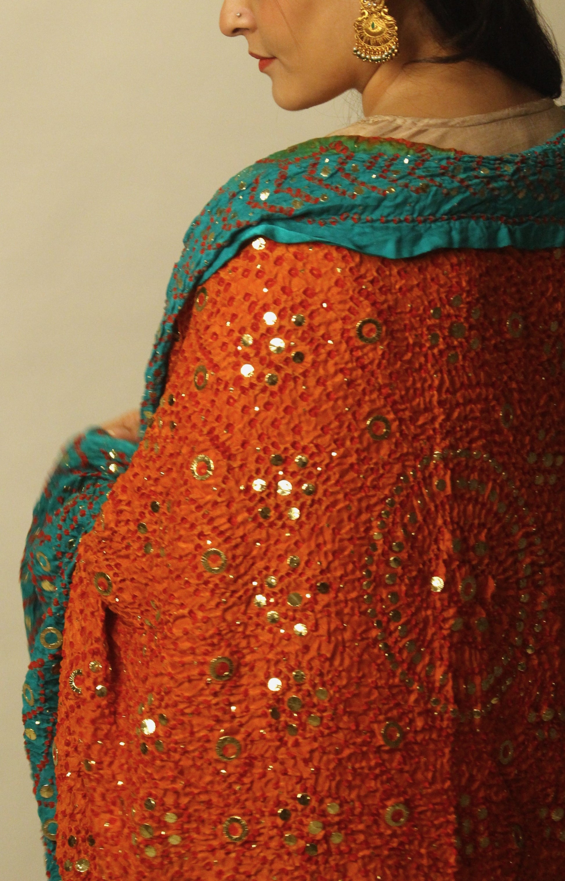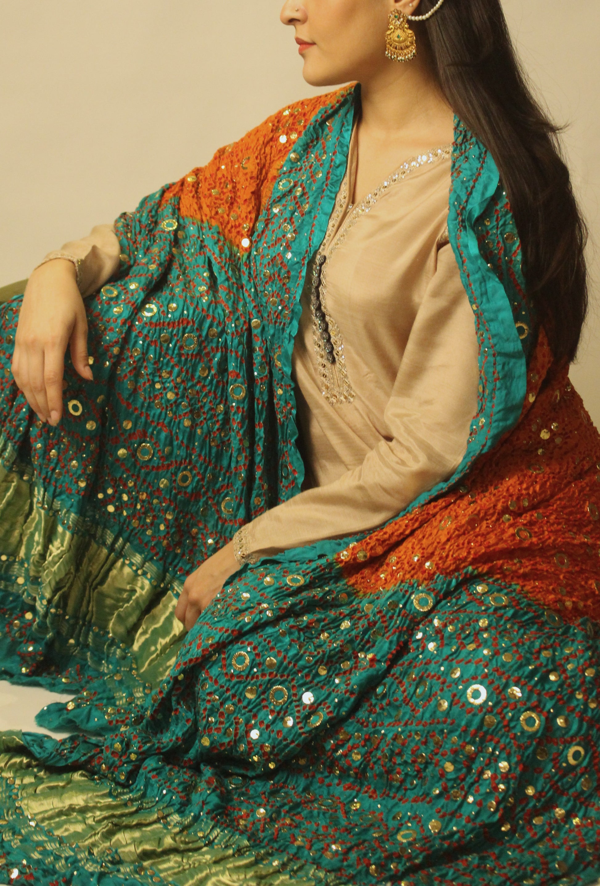 3 Yards Indian Gajji silk Dupatta in intricate chunri pattern with kamdani.