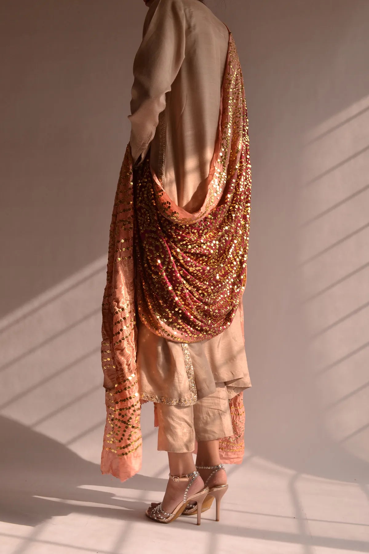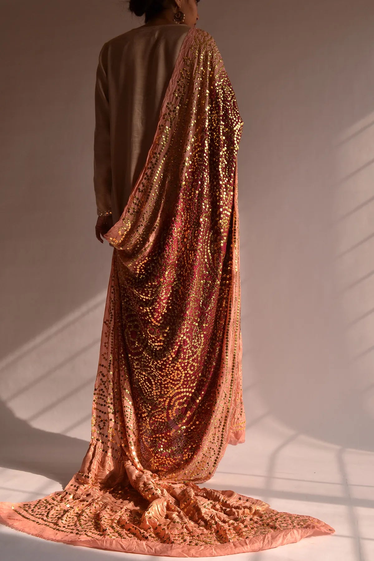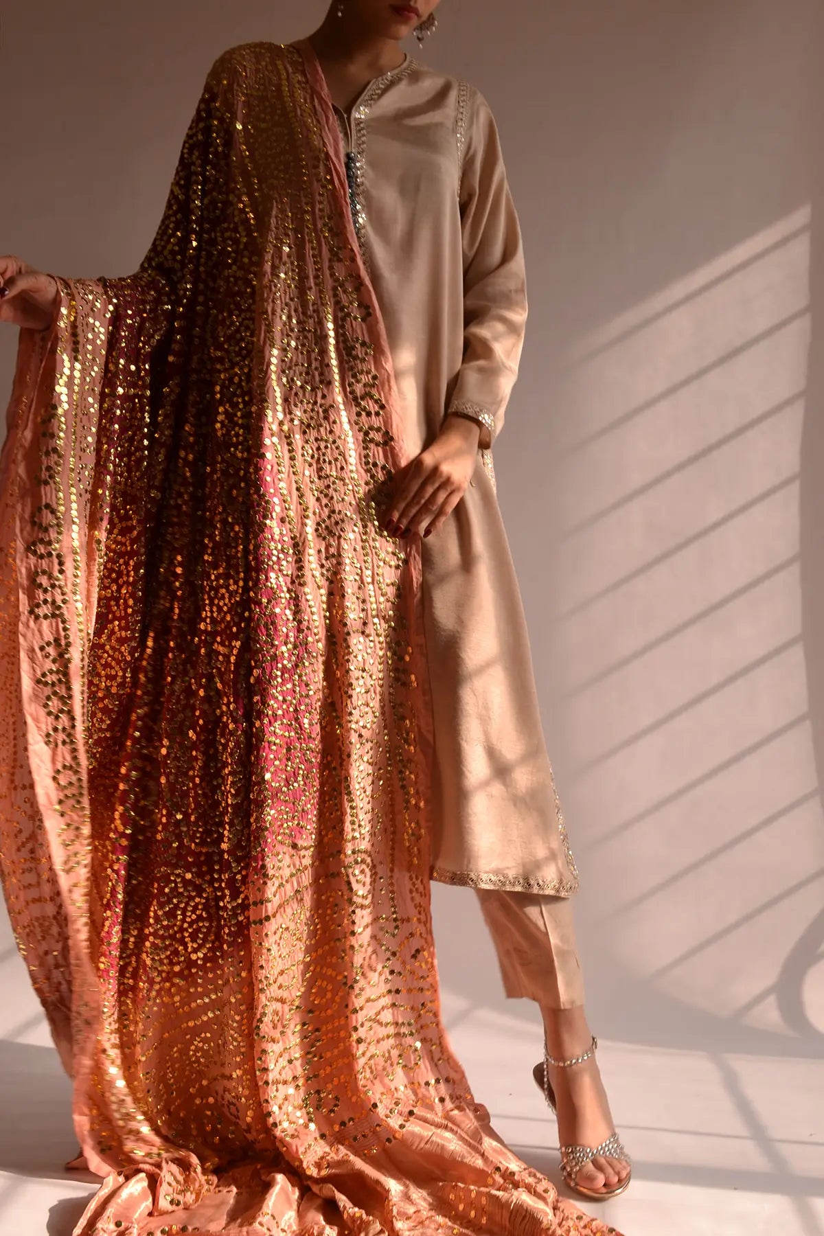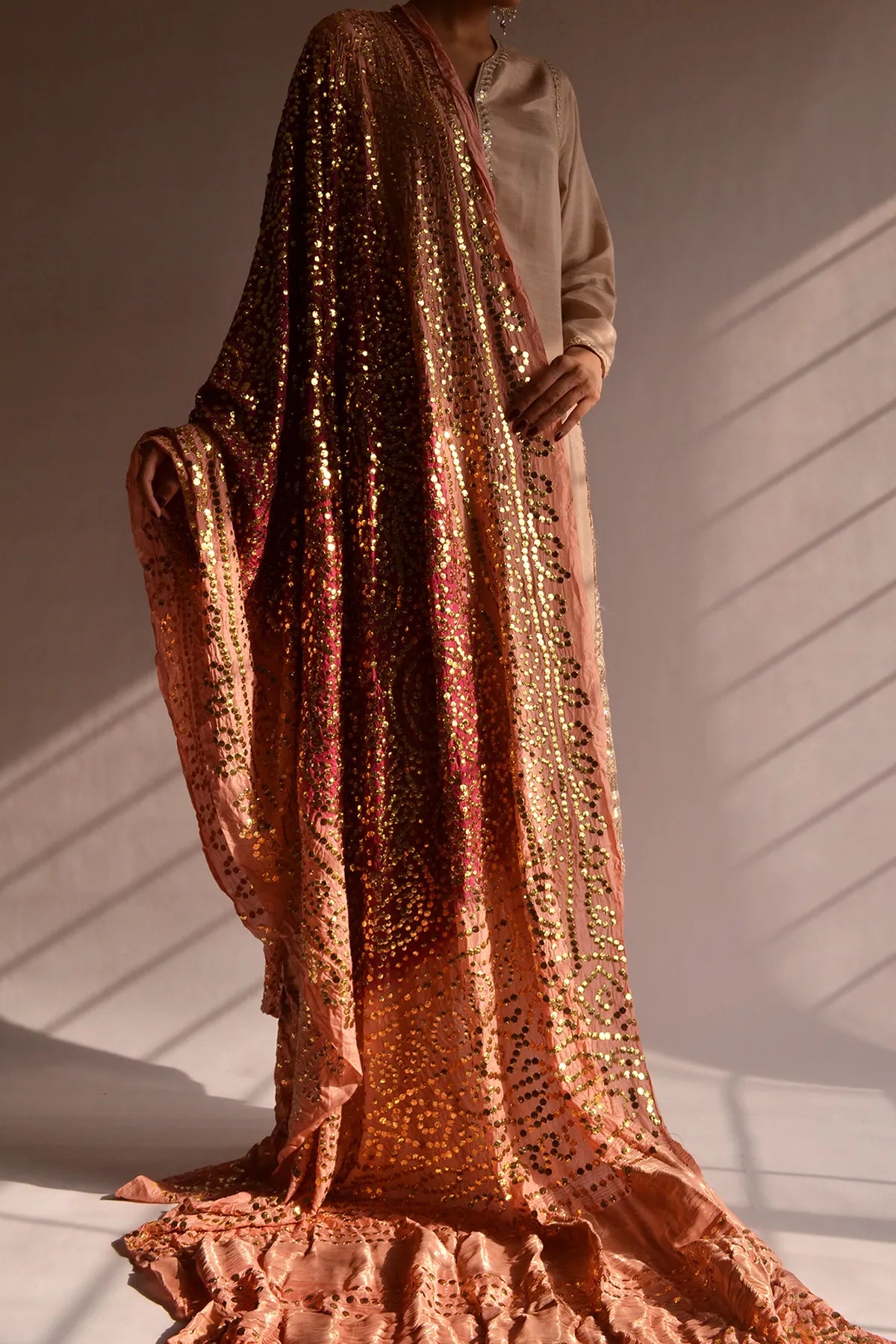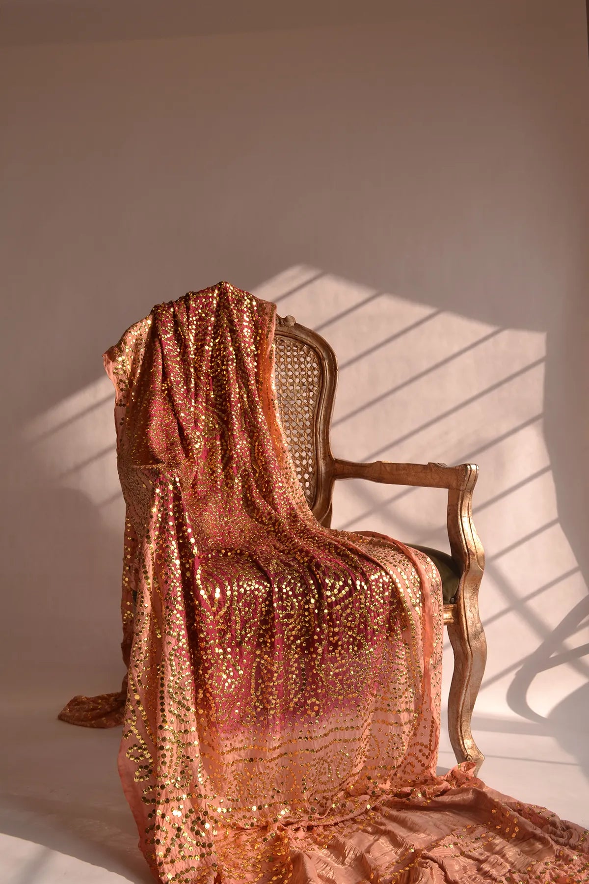 3.5 yards gajji silk dupatta in chunri with heavy kamdani along with finishing.