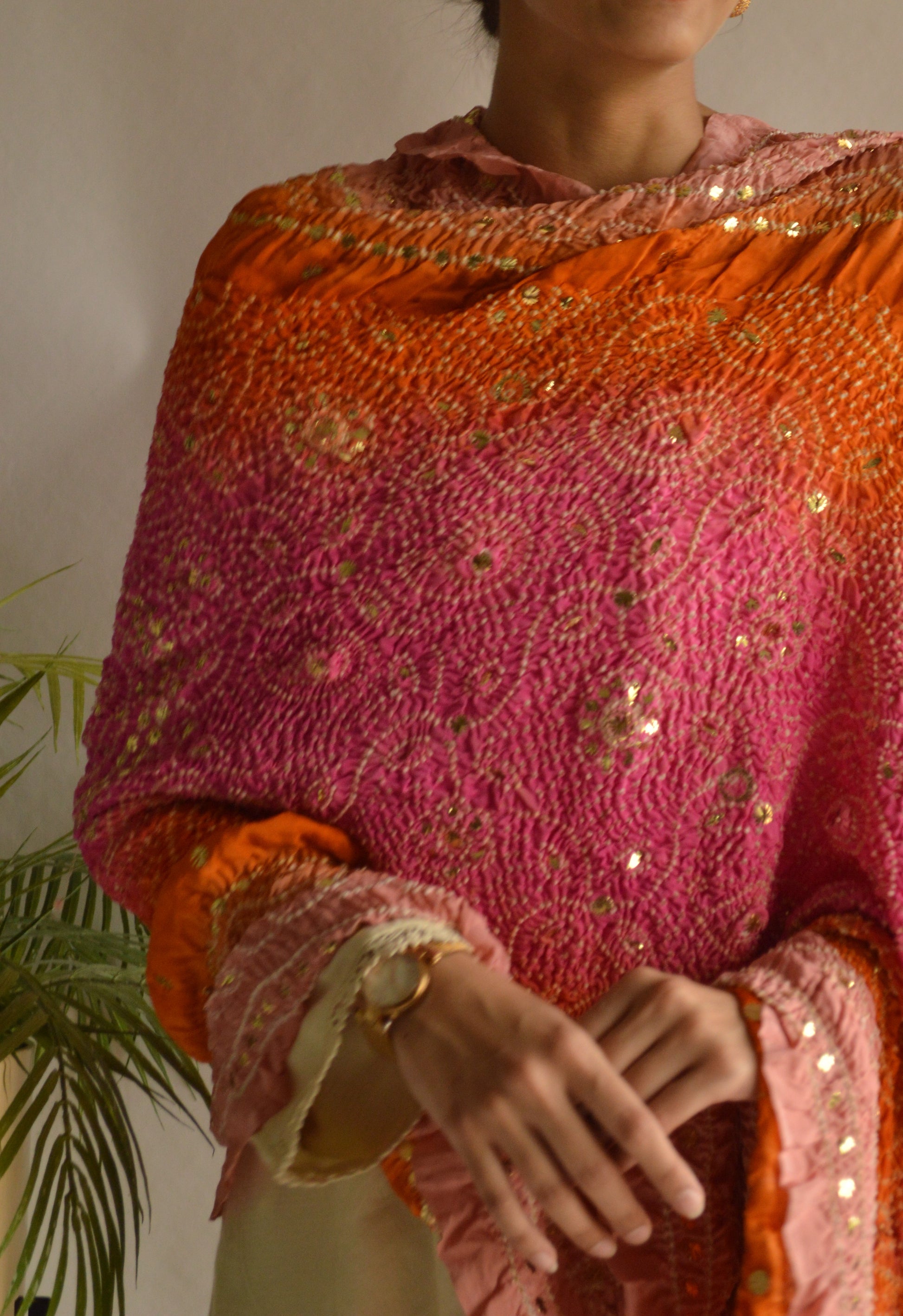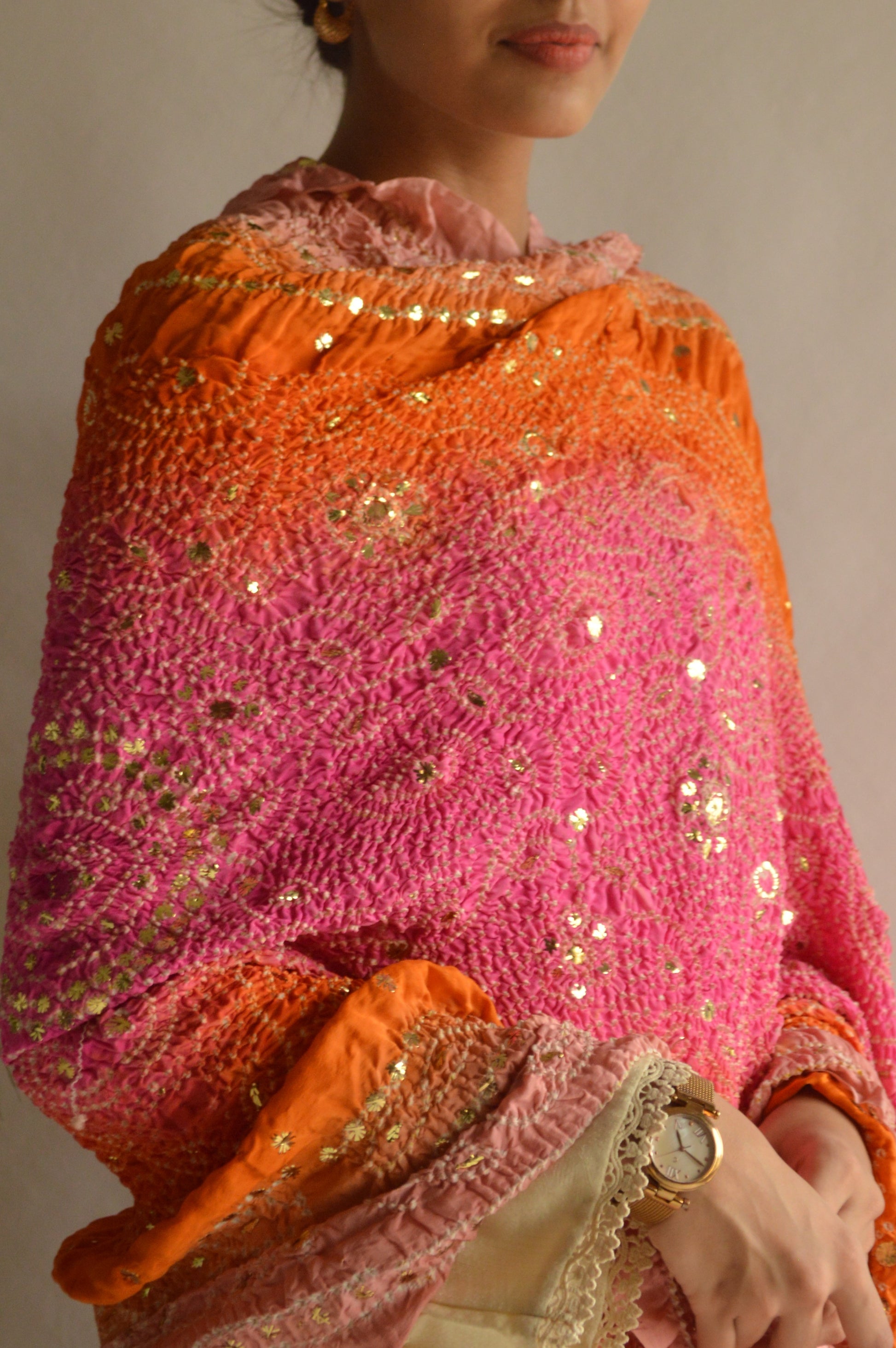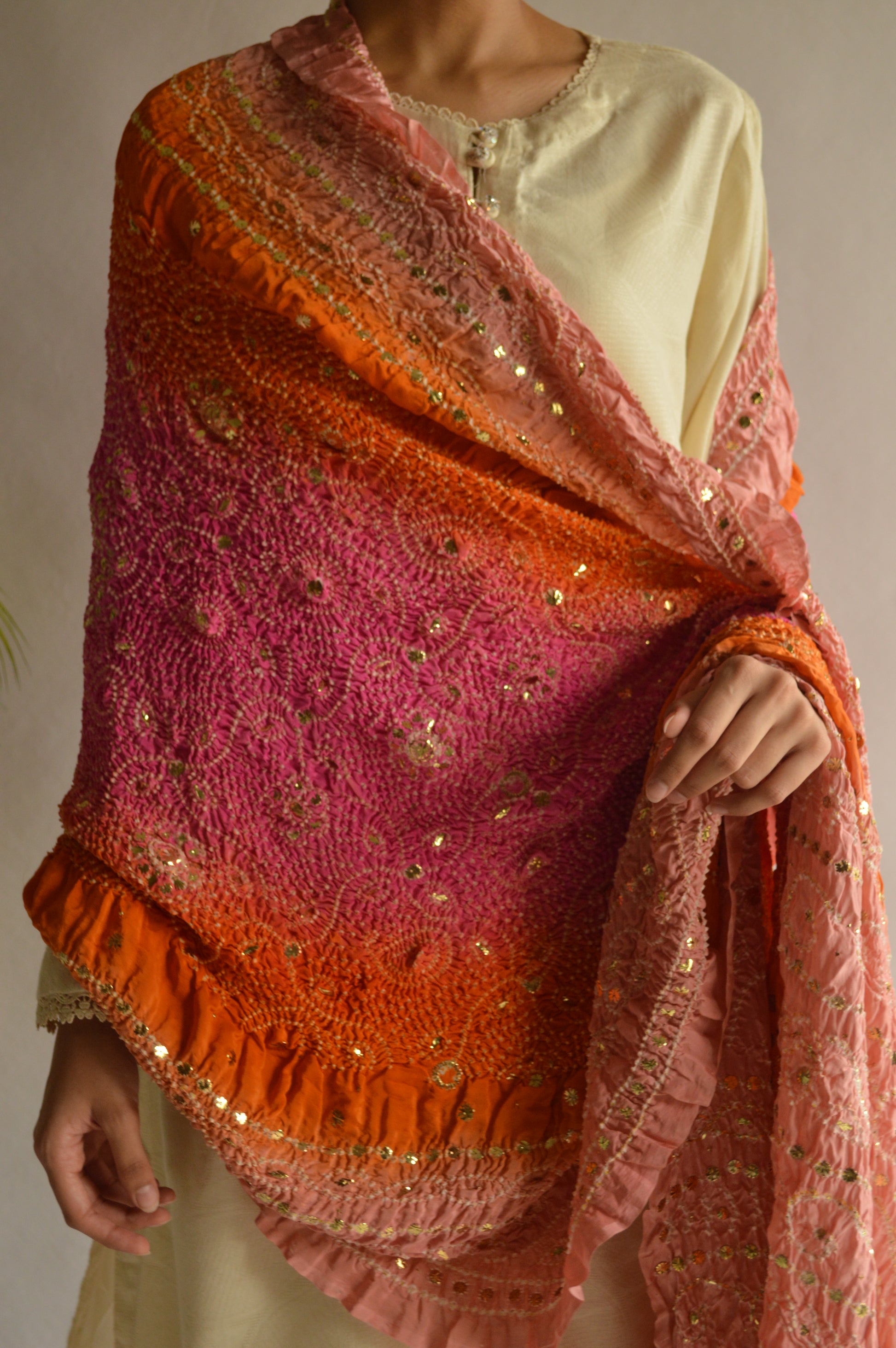 4.25 yards, pure charmeuse silk duppatta with intricate chunri pattern along with kaamdani