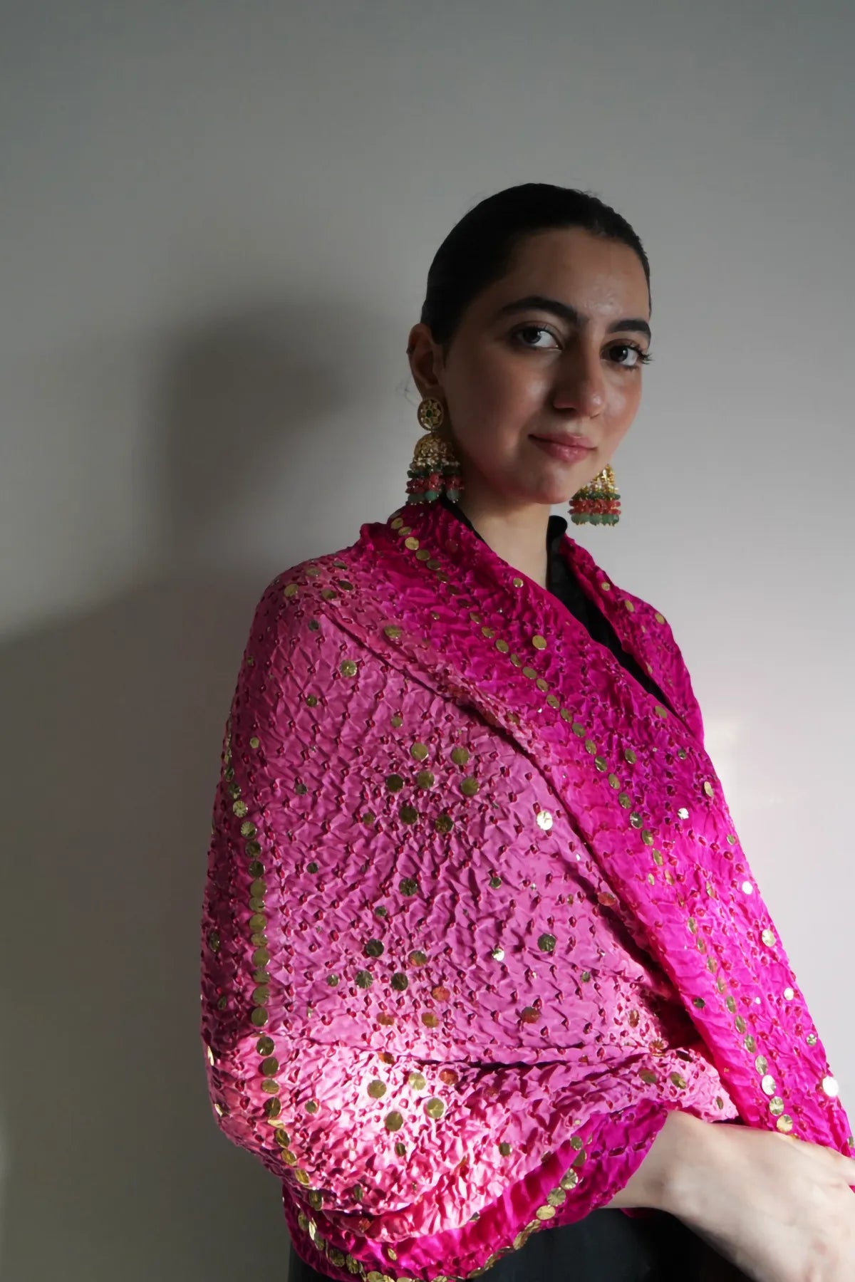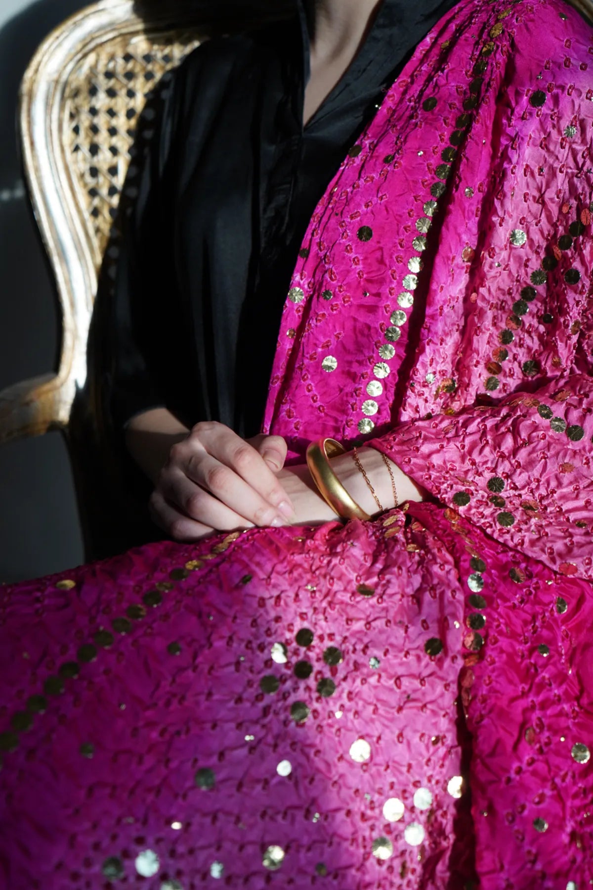 3.25 yards pure charmeuse silk in shikari chunri with kamdani along with finishing.