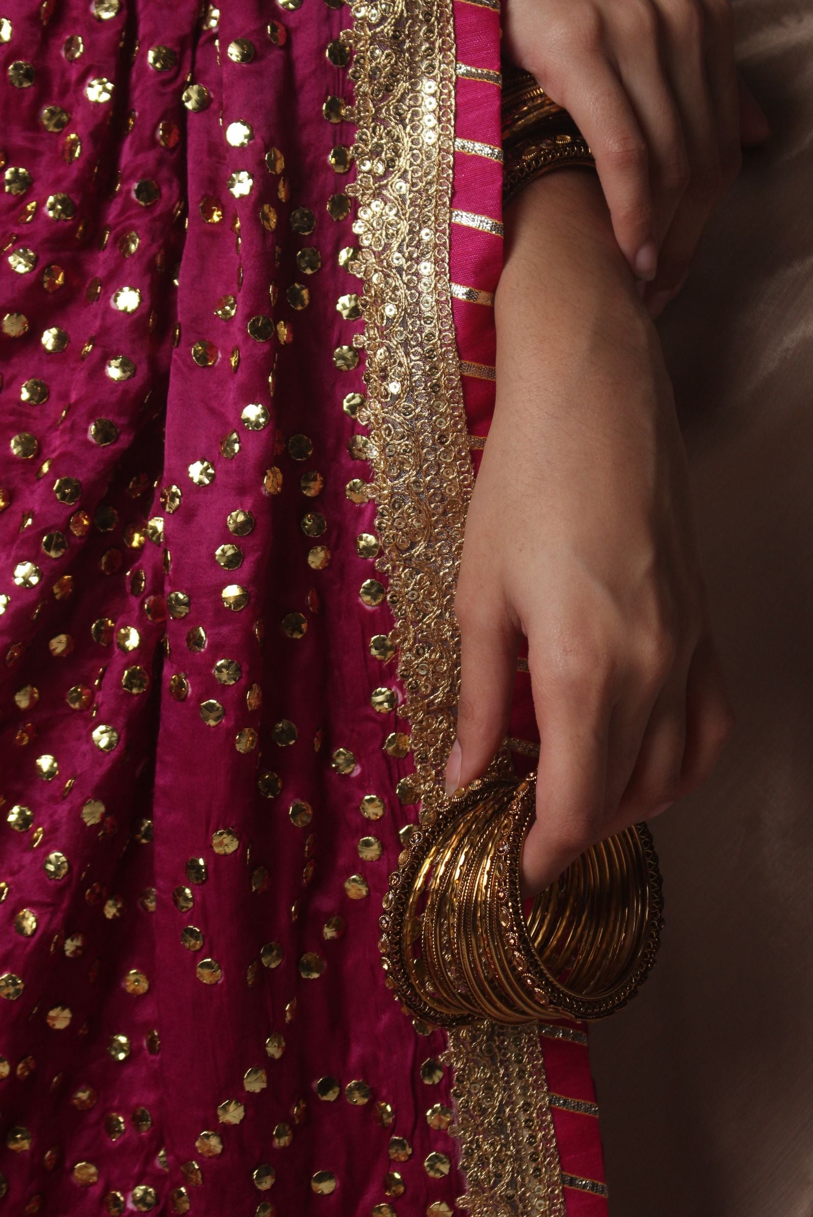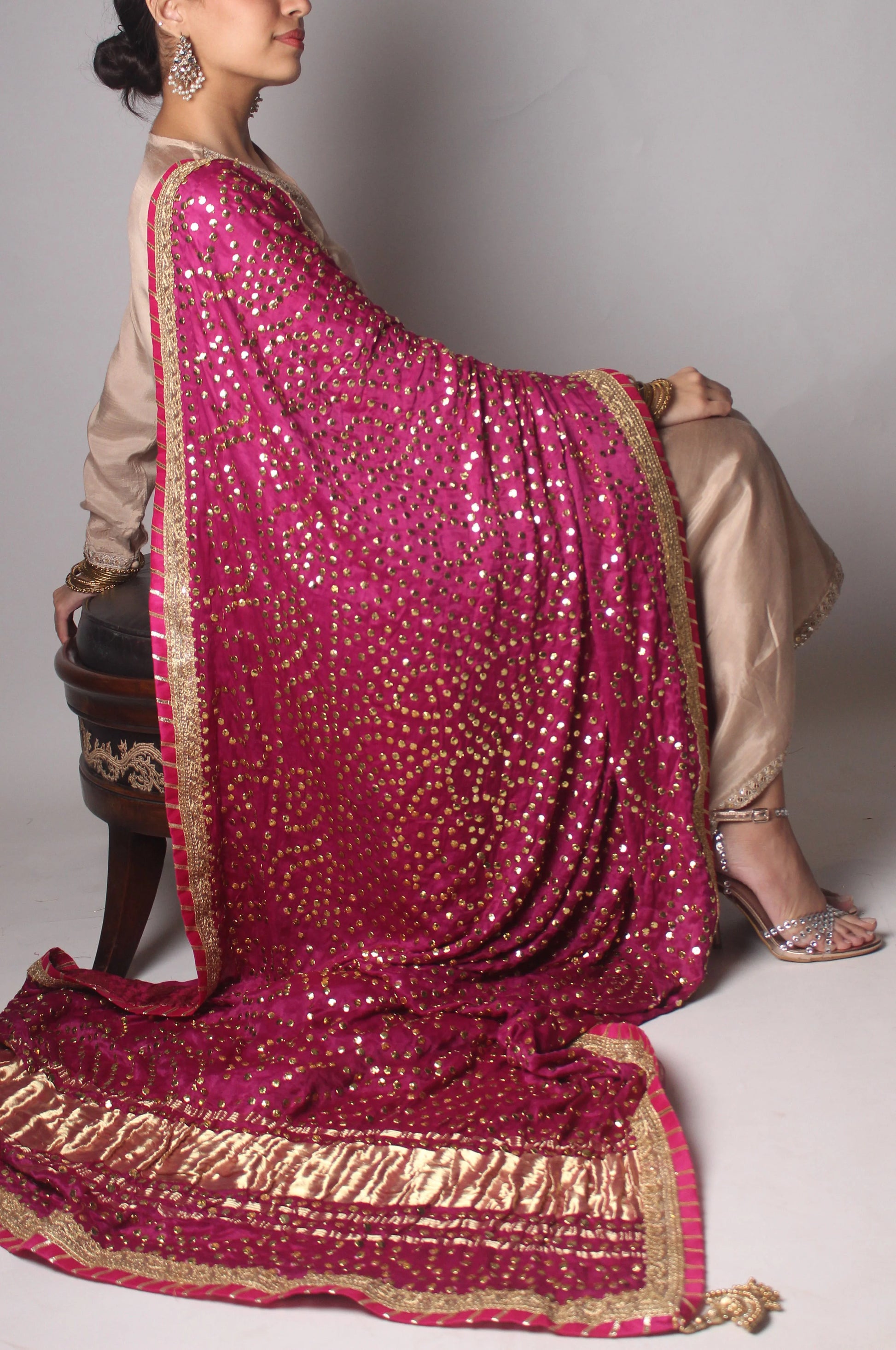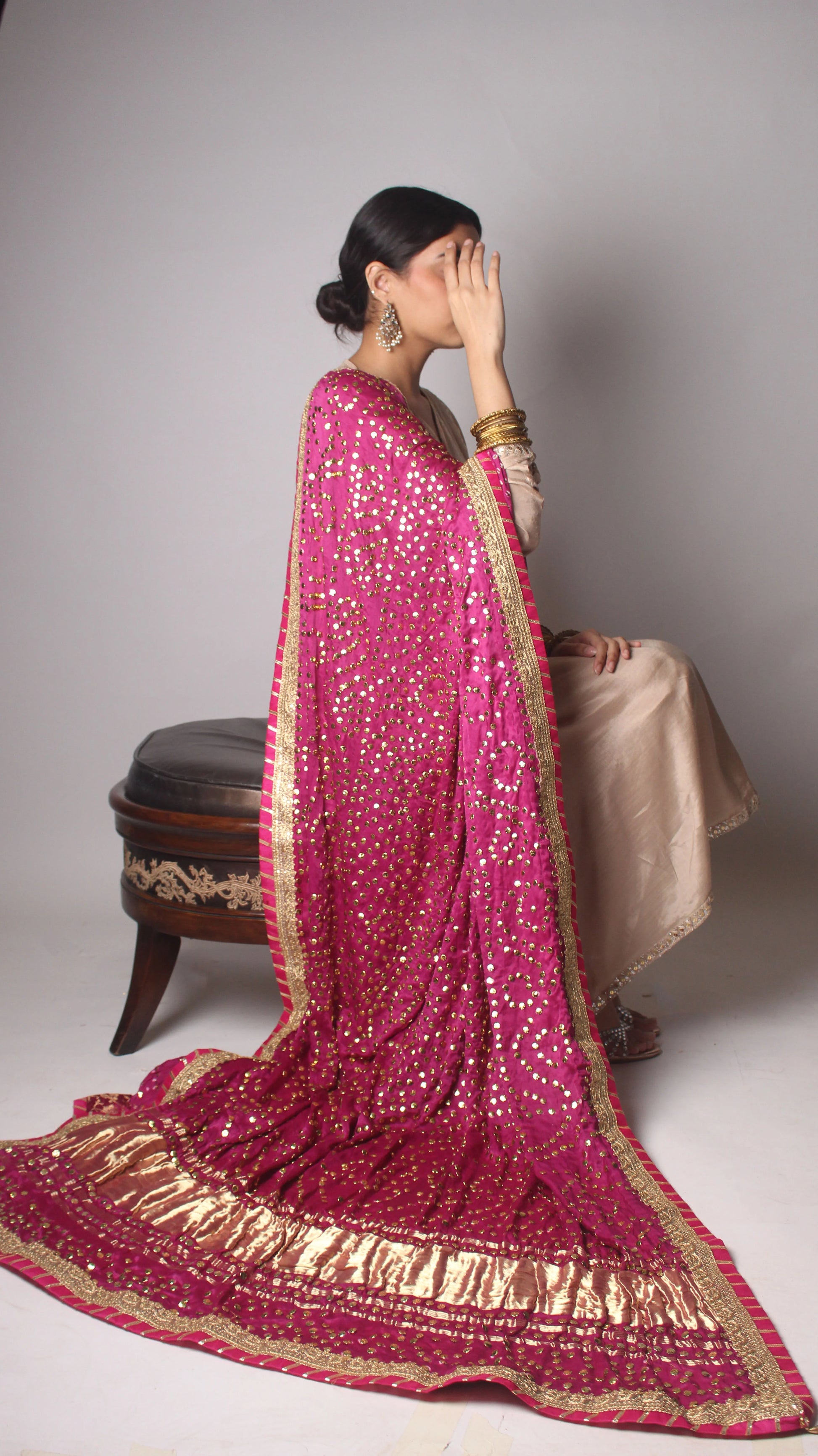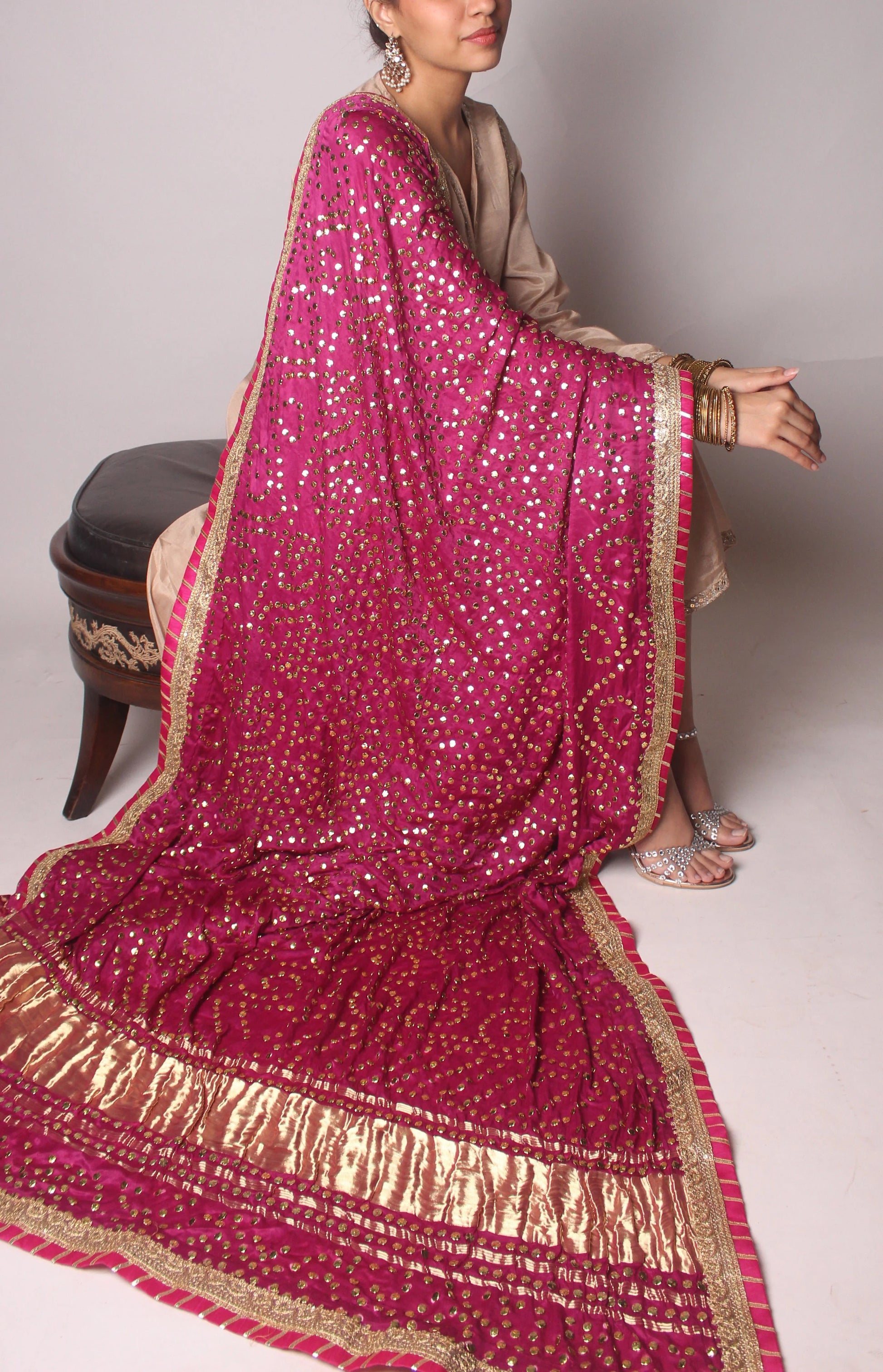 3.5 yards chunri gajji silk dupatta with heavy kamdani along with finishing.