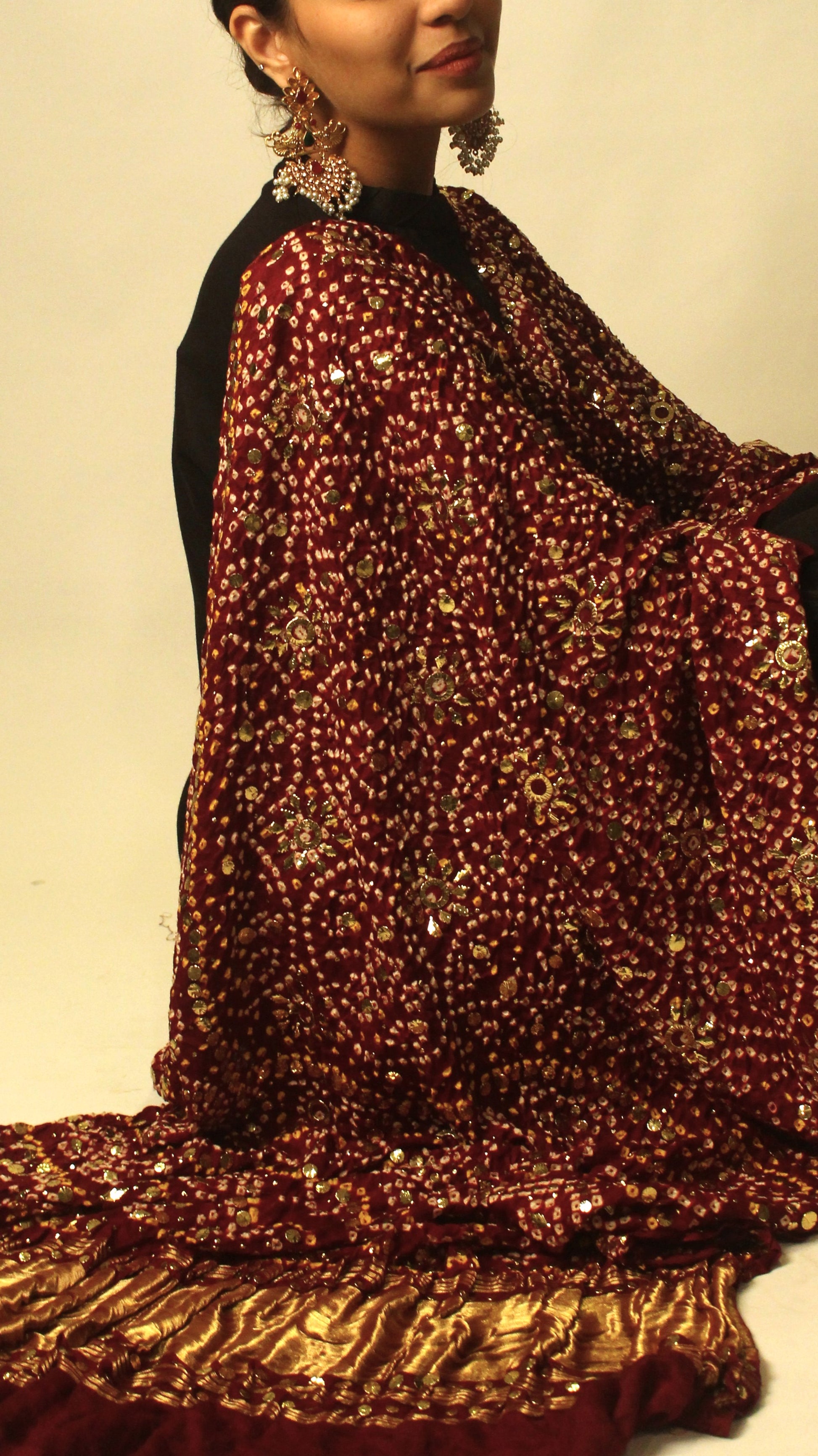 3 Yards Indian Gajji silk Dupatta in intricate chunri pattern with kamdani.
