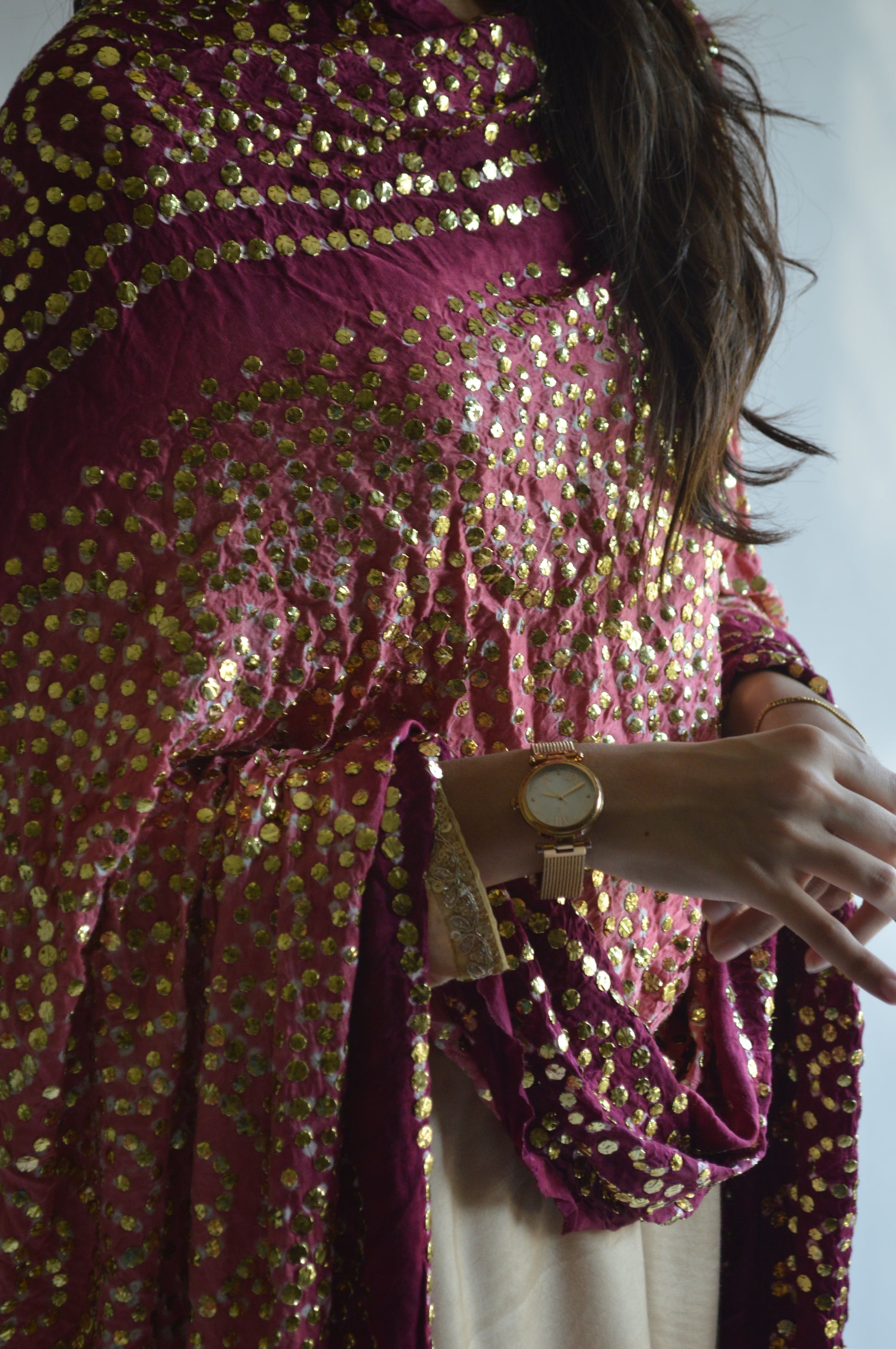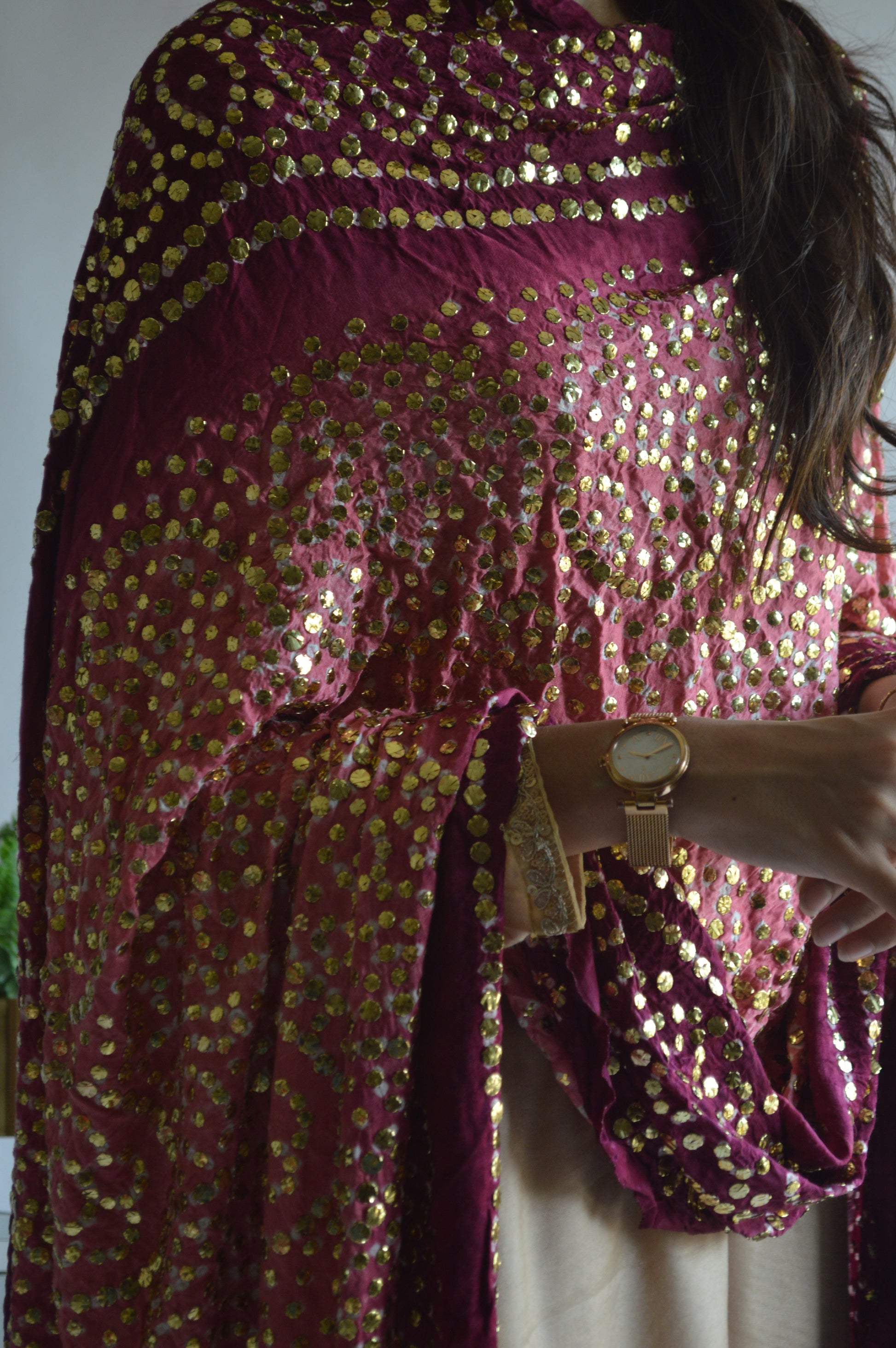 3 yards Local gajji silk duppatta with heavy kaamdani.