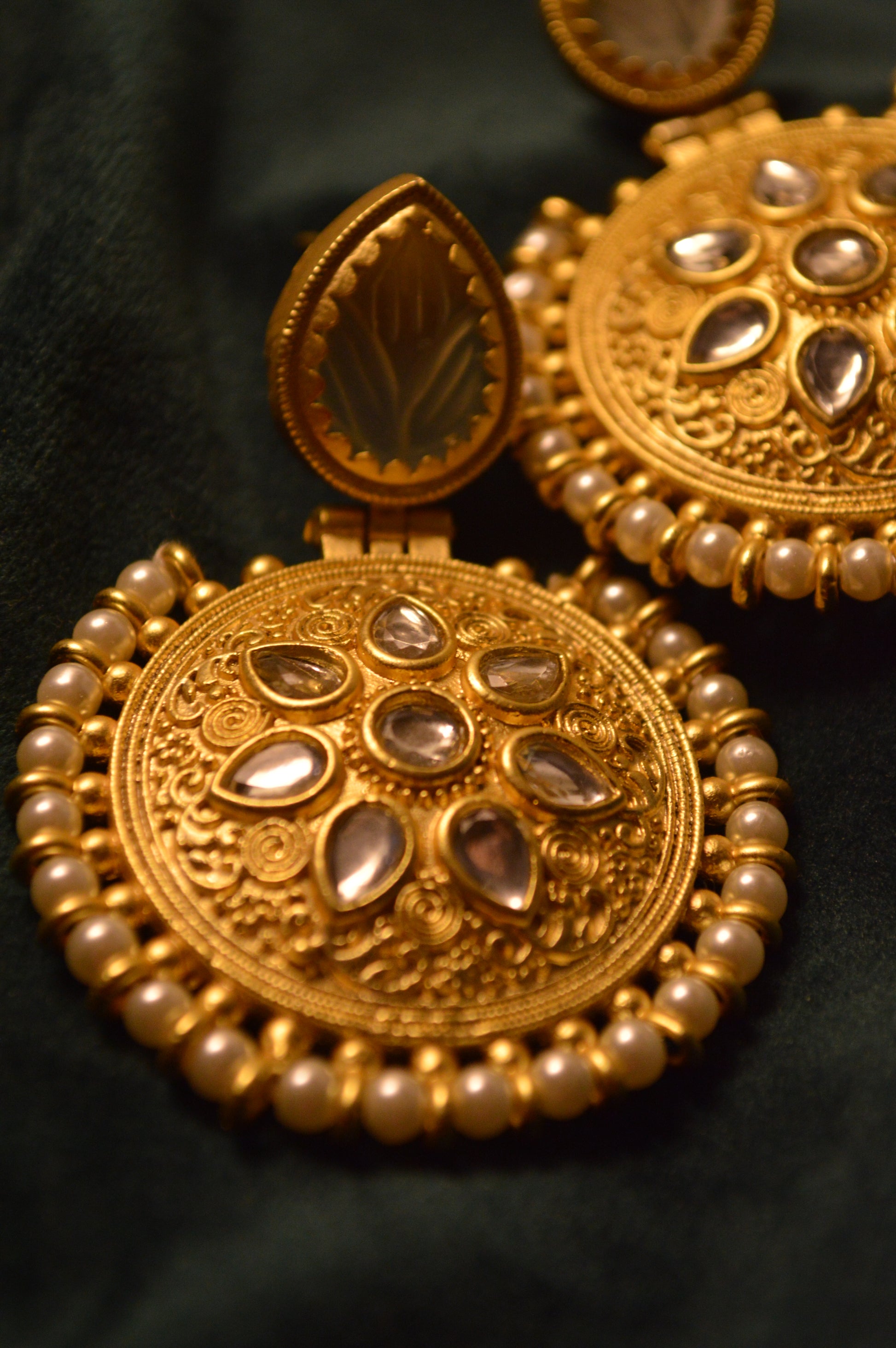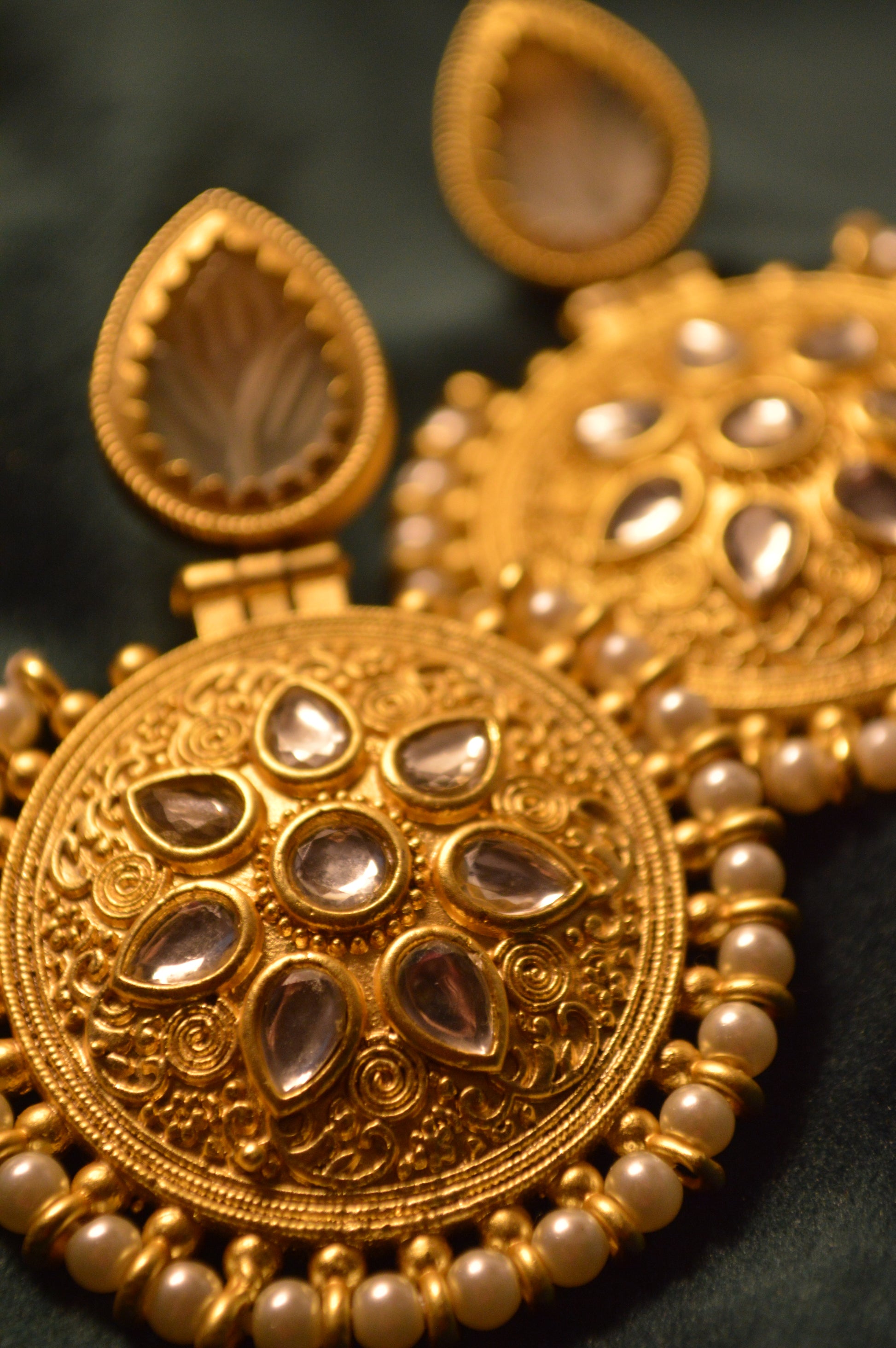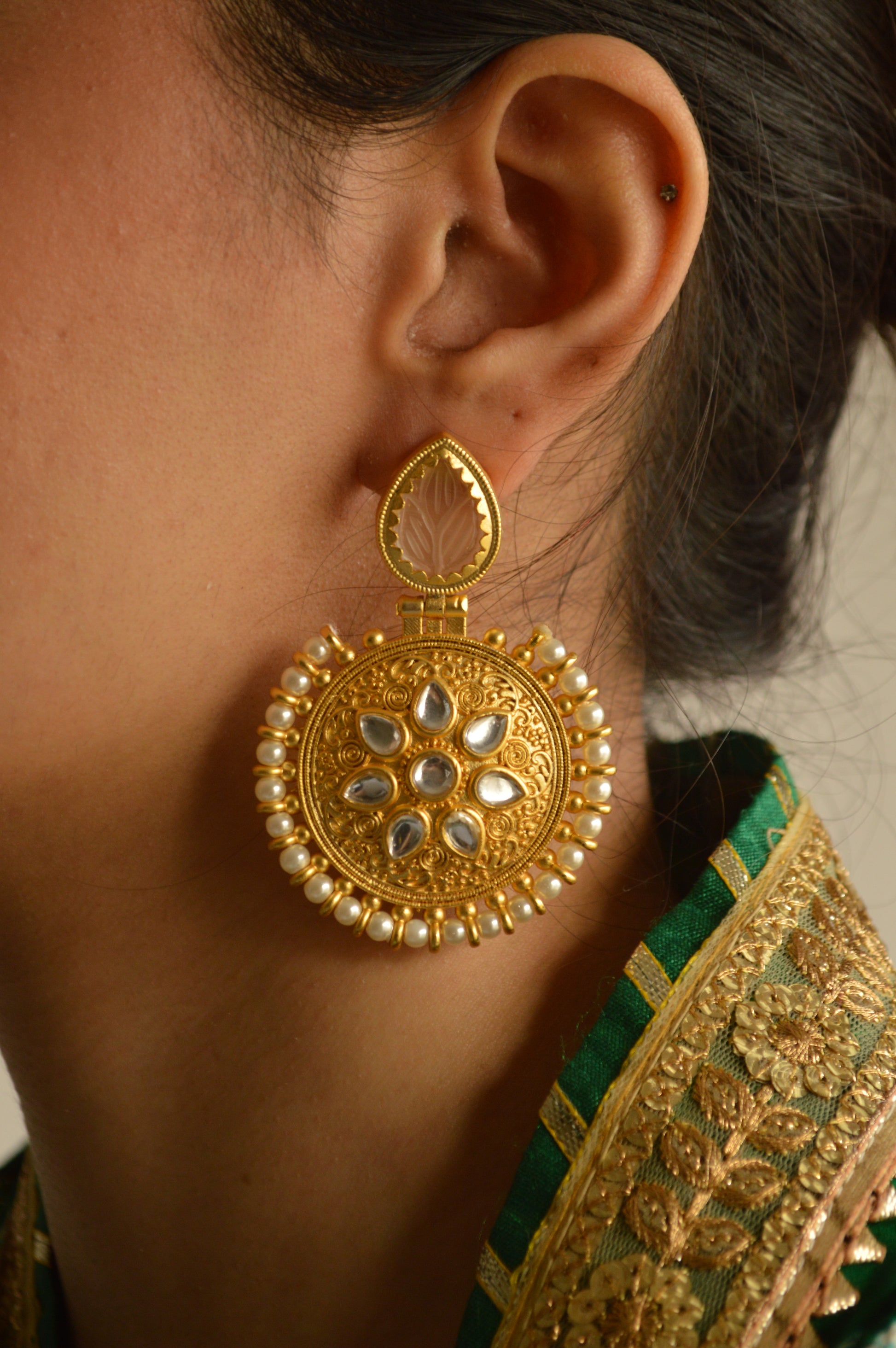 Exquisite earrings adorned in pearls.