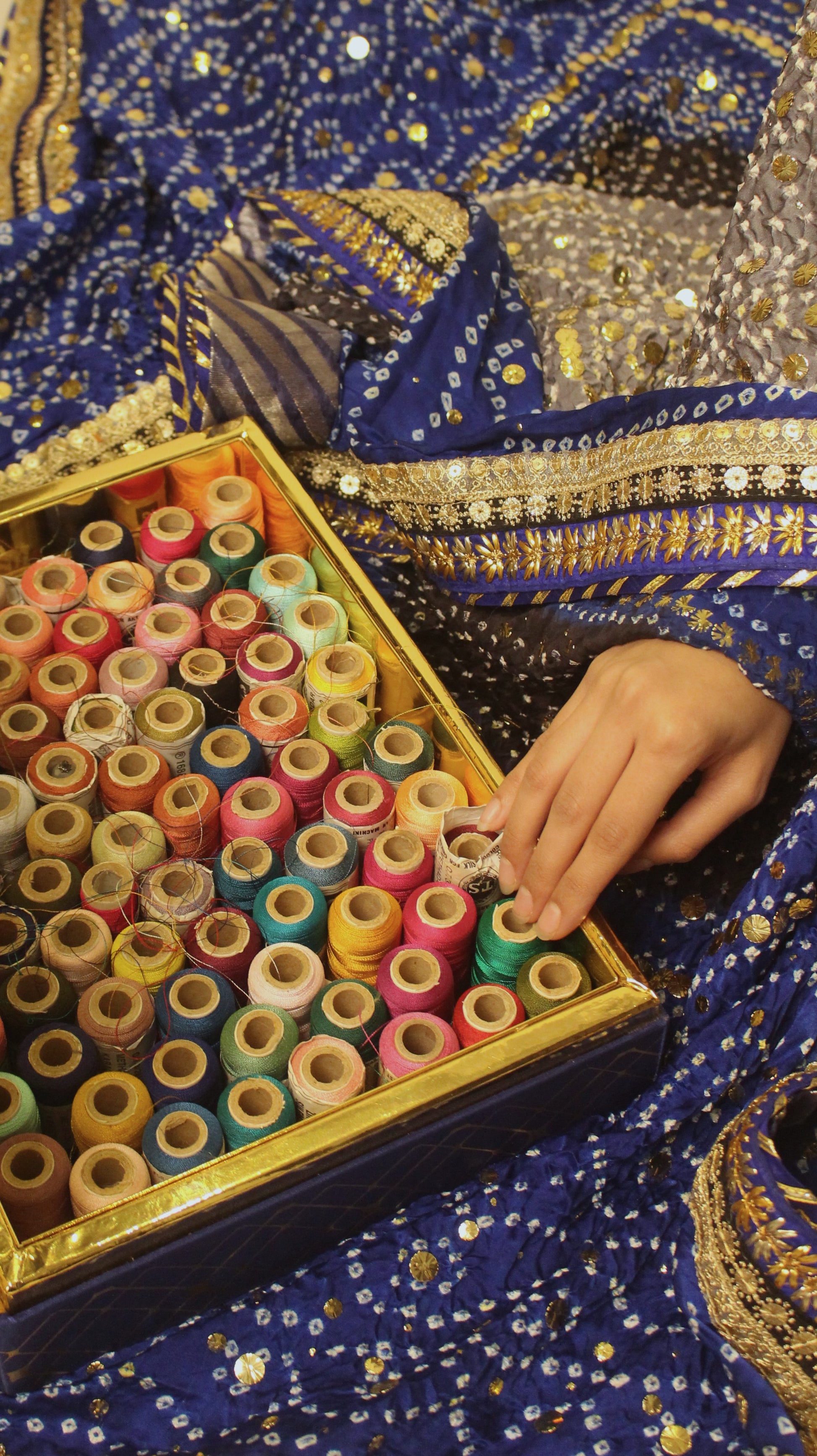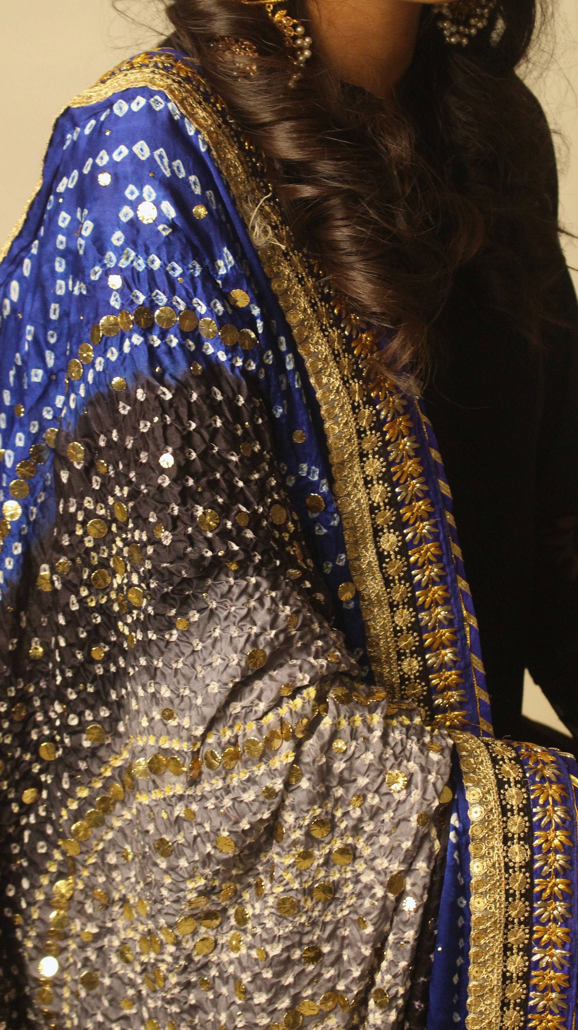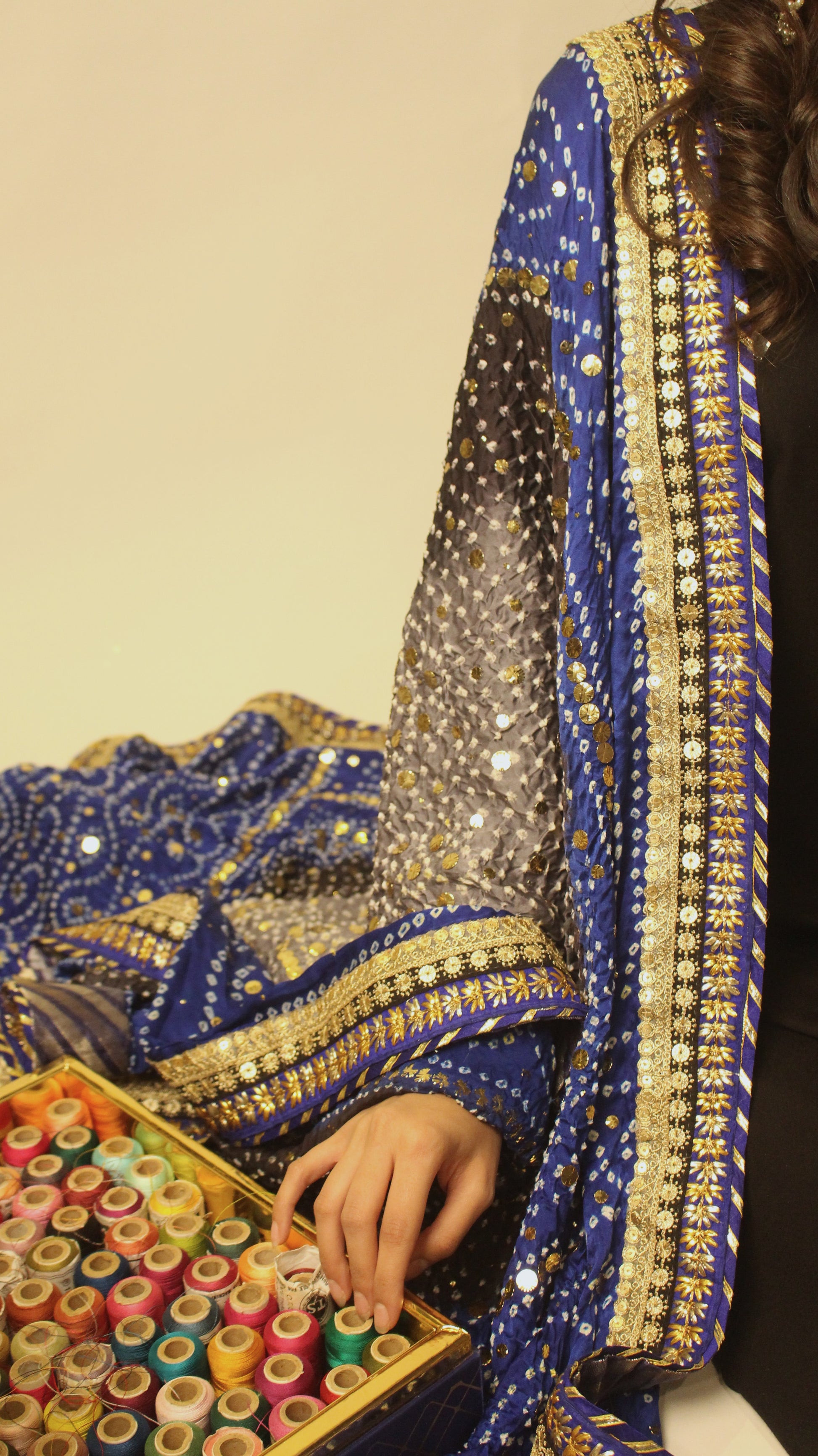 3.25 yards pure charmeuse silk with chunri with kamdani along with finishing.