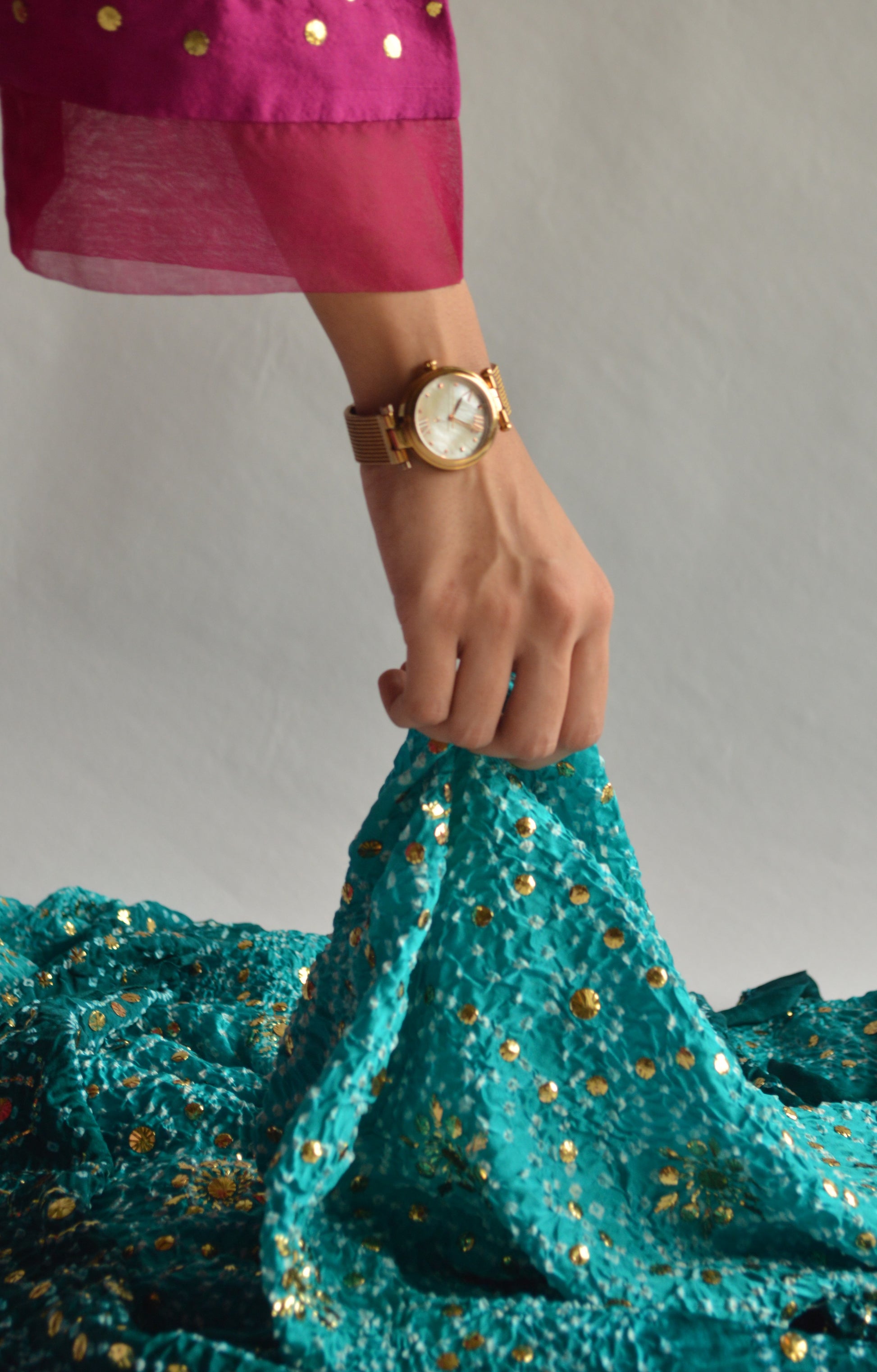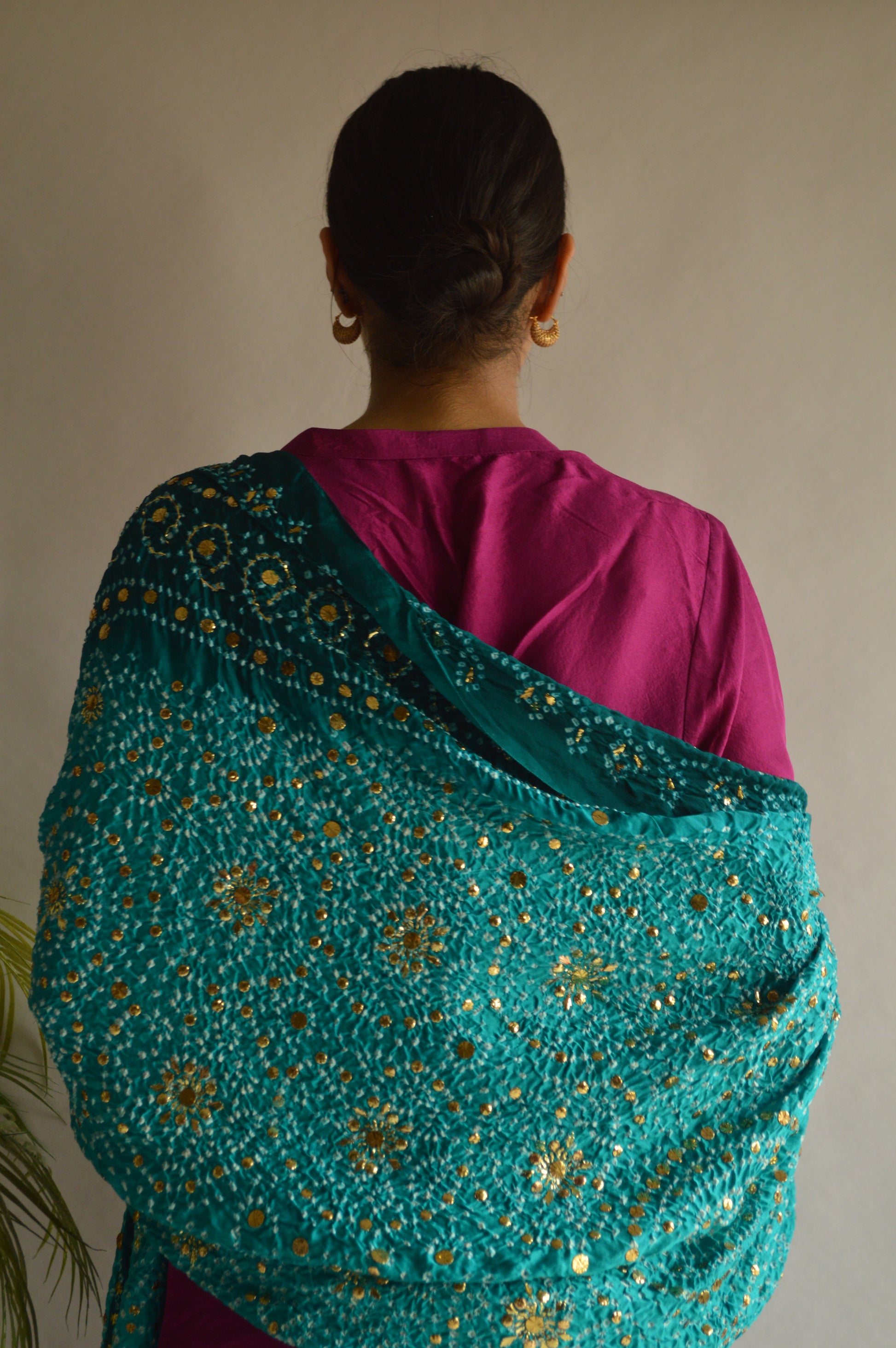 4.25 yards pure charmeuse silk duppatta with intricate chunri pattern along with kaamdani.