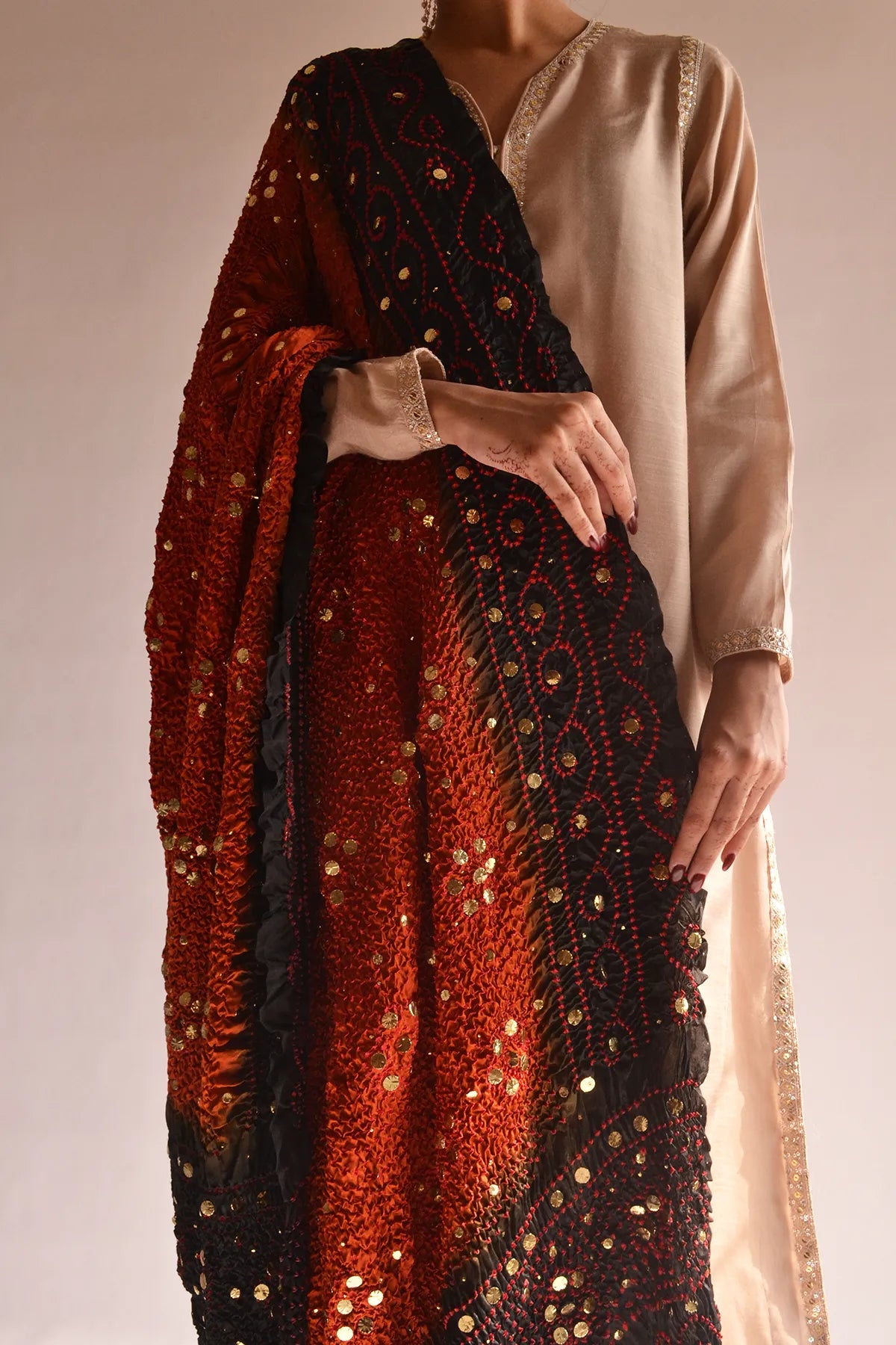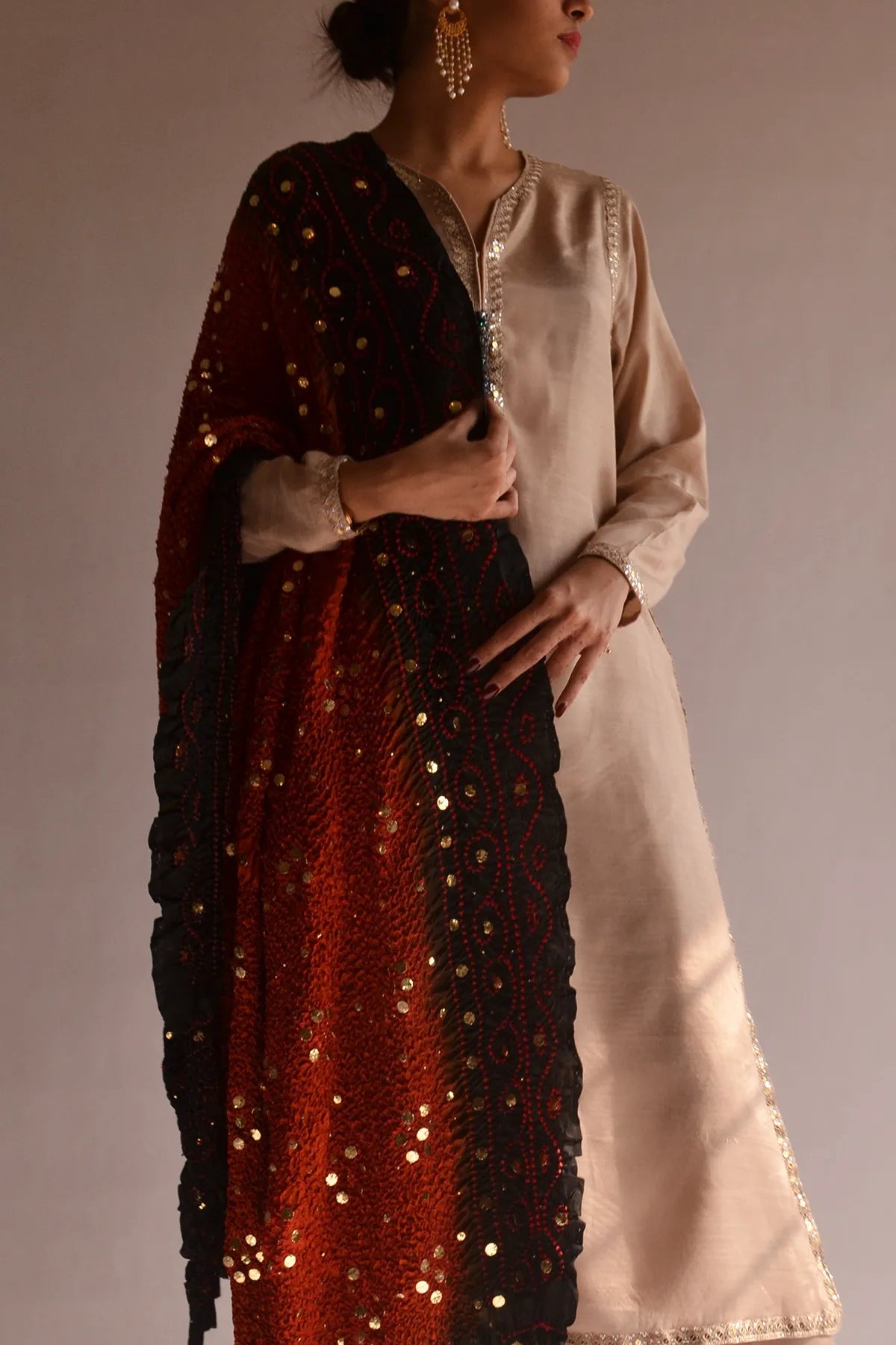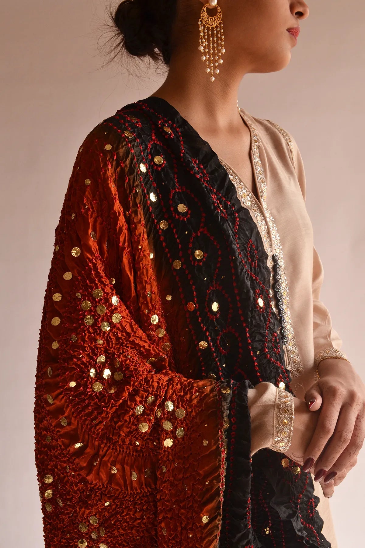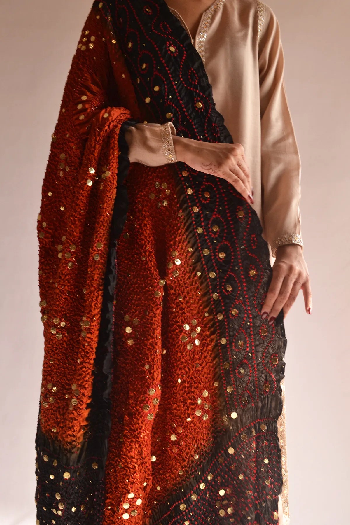 3.25 yards pure charmeuse silk in shikari chunri with kamdani along with finishing.