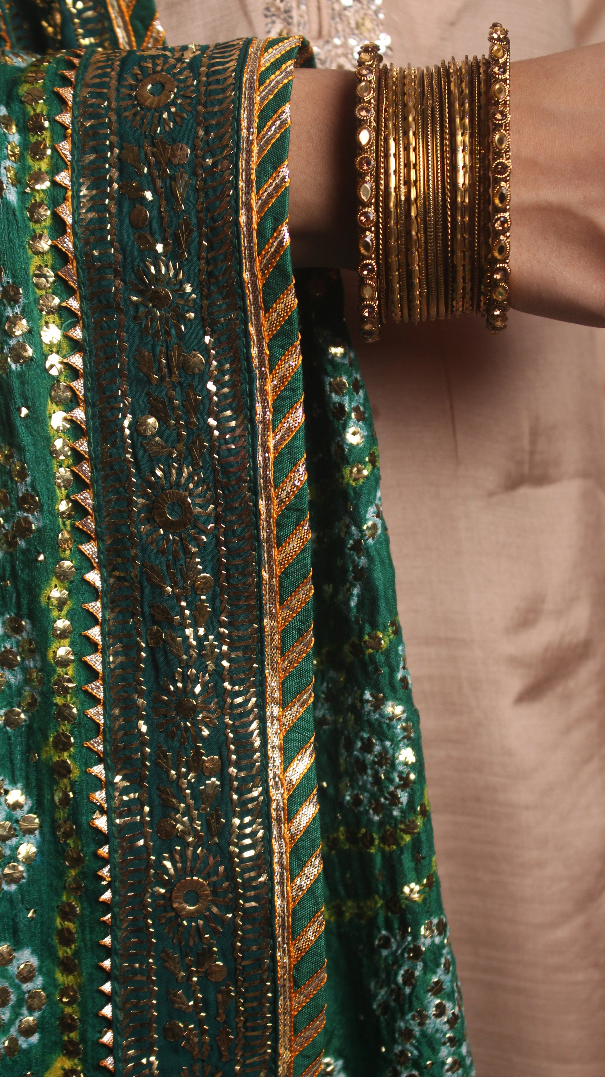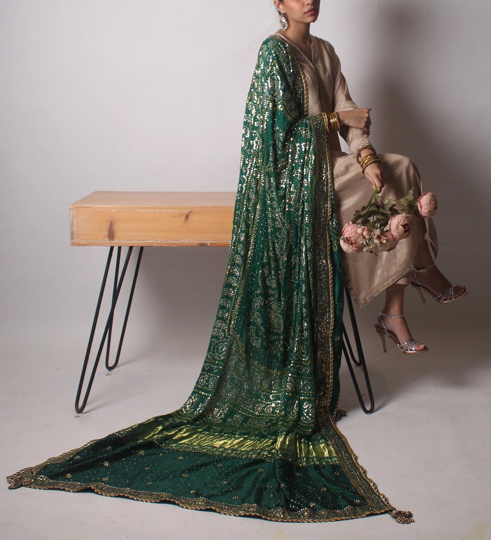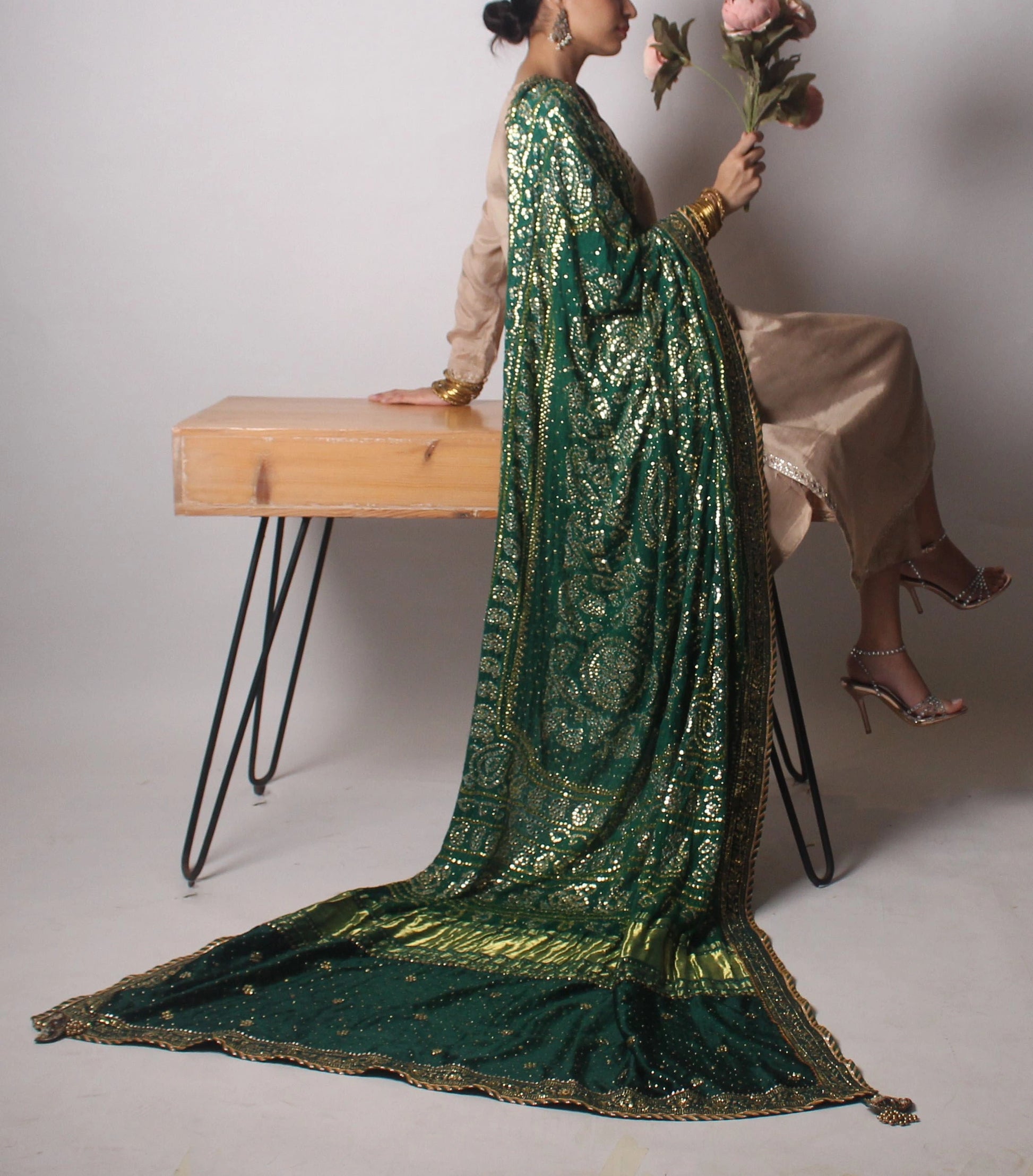 3.5 yards Indian gajji silk duppatta with kaamdani along with handcrafted intricate kaamdani border all around along with jamawar inside and tassels.